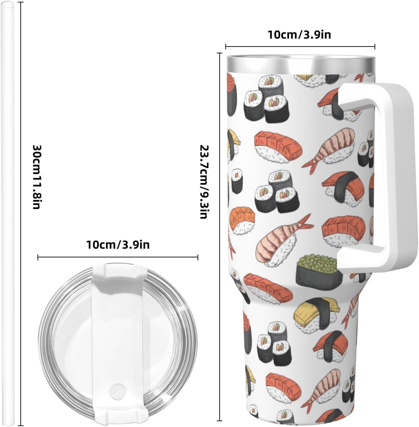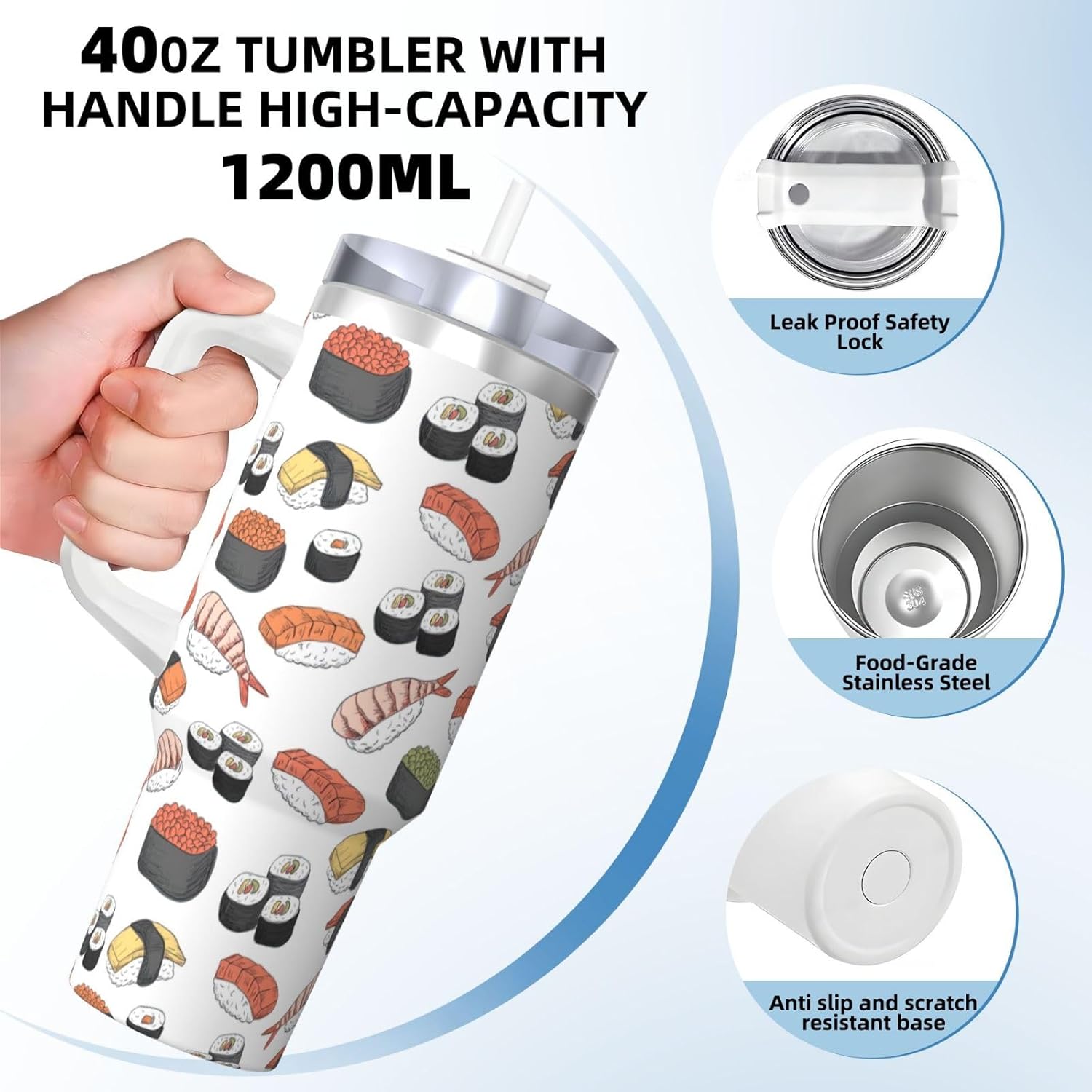 This Sushi Print Ice Bully Cup features a double layer stainless steel design that can be used for a long time without rusting. The lid has good sealing to prevent water from overflowing, and it is easy to unscrew for filling and cleaning. It can keep water, coffee, or drinks warm or cool for hours and is suitable for travel, camping, and driving.