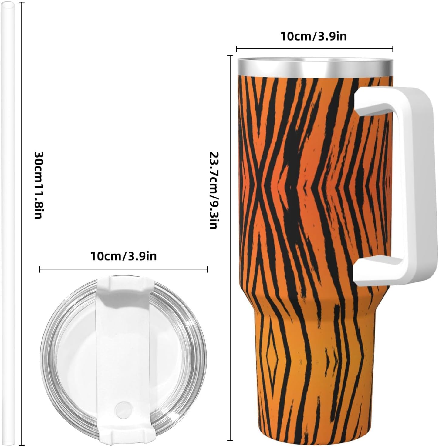 This Tiger Stripe Print Ice Bully Cup features a double layer stainless steel design that can be used for a long time without rusting. The lid has good sealing to prevent water from overflowing, and it is easy to unscrew for filling and cleaning. It can keep water, coffee, or drinks warm or cool for hours and is suitable for travel, camping, and driving.