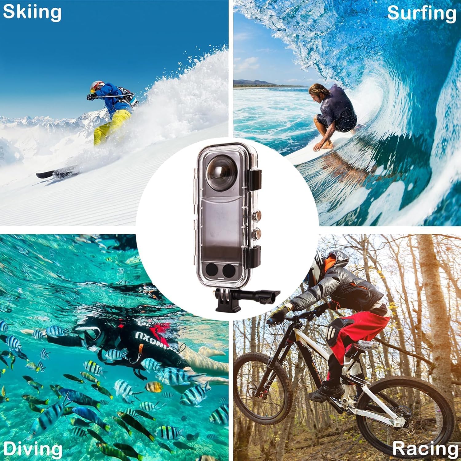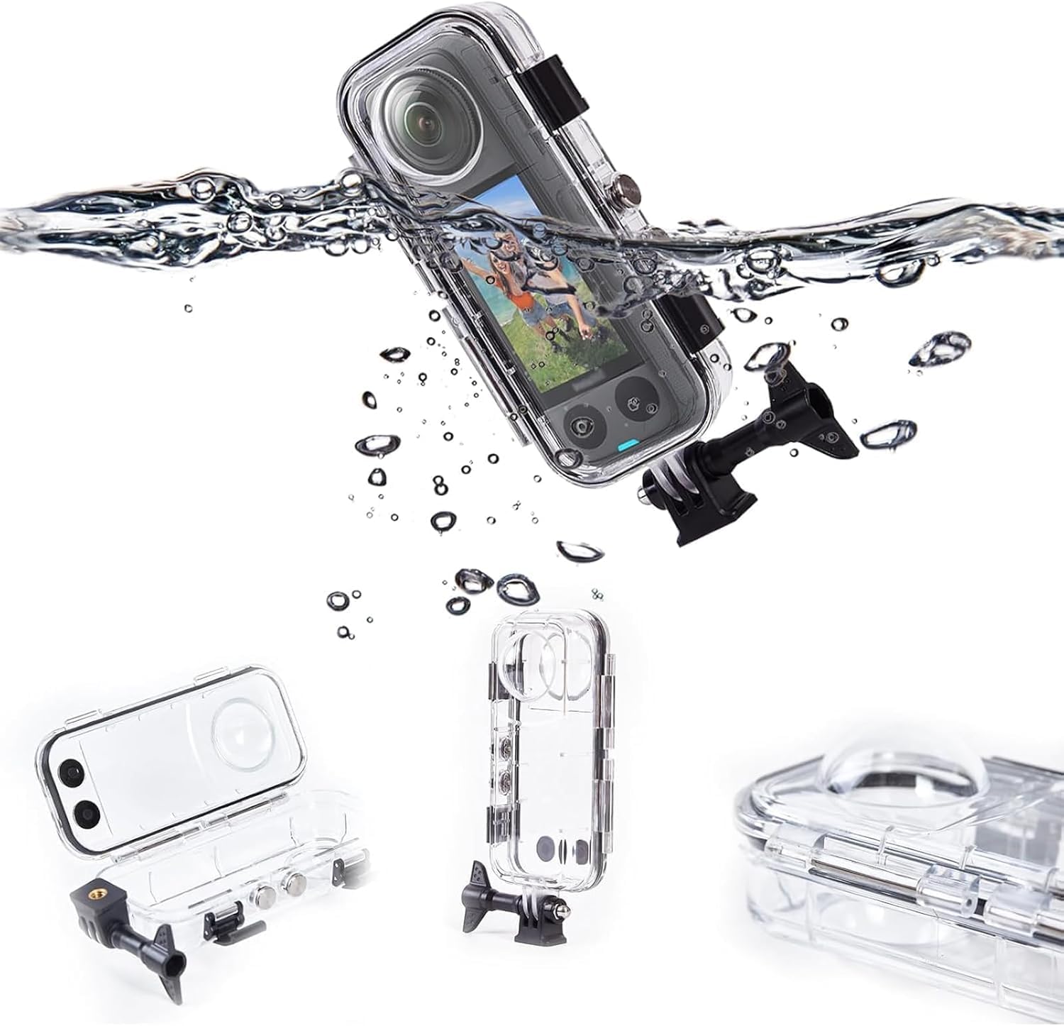 Material: PC + Optical Tempered Glass LensWaterproof Depth: 40m (131ft)Usage: Ideal for diving, swimming, surfing, skiing, mountaineering, parachuting, and underwater selfies.Net Weight: 170g (Lightweight & Portable)Dimensions: 15 × 7 × 6cm (Compact Design)Included: 1 × Waterproof Dive Case for Insta360 X3