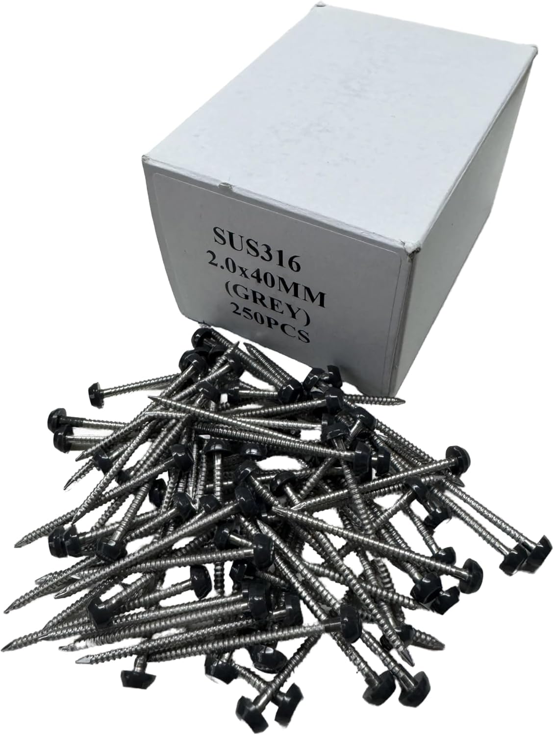 Baulantik Polytop nails are the ideal choice for visually appealing and stable fixings - especially when mounting L-profiles on locations and roof eaves. The coloured plastic head provides a subtle, harmonious look without visible metal accents and eliminates the need for additional painting work. Ideal for outdoor applications where aesthetics and weather resistance are required. Features: A4 stainless steel: corrosion resistant and durable - ideal for outdoor use Impact-resistant and UV-resistant polymer head: does not chip when hammered, is colour-stable and weatherproof - for a permanently clean and safe installation. With ring thread: ensures particularly high holding force and reliable fixation. Versatile: perfect for L-profiles, façade profiles, window connections, plastic panels and much more. Technical data: Material: A4 stainless steel with coloured polymer head. Colours: anthracite (RAL7016). Head diameter: 2.0 mm. Nail Length:40.0mm Box contents: 250 pieces per box. Advantages at a glance: No repainting required. Uniform, high-quality appearance. Weather-resistant and UV-resistant. Reliable connection even under heavy use