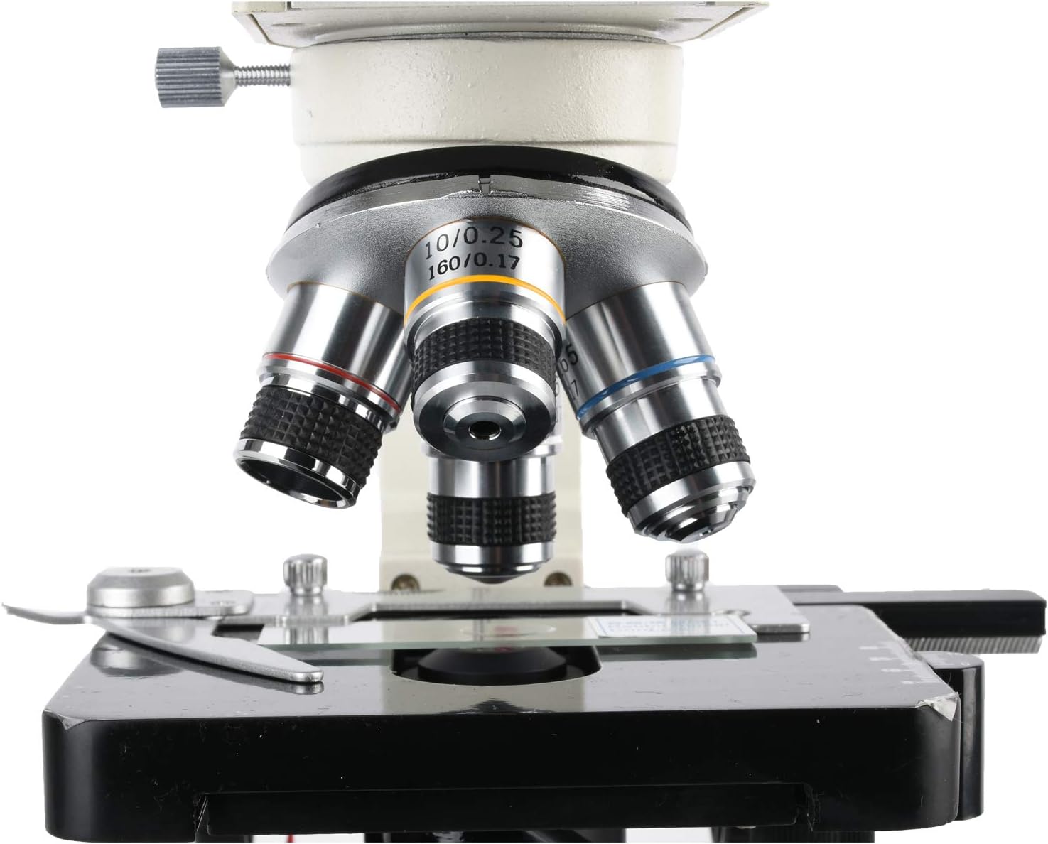 Model:KP-PH36T Optical enlargement:40X-1600X Observation tube:Hinge Trinocular,30 degrees inclined,360 degrees rotate Eyepiece:Wide-angle eyepiece WF10X/18mm,Wide-angle eyepiece WF16X Objective lens:185 achromatic lens 4X/10X/40X(spring),100X(The oil mirror) Converter:Four holes conversion Operating platform:Double mechanical mobile platform,size 125×115mm,Moving range 76mm×52mm Focusing mechanism:Coarse micro coaxial, coarse 20mm, fine-tuning of 1.3mm Condenser:Abbe concentrator,N.A.=1.25,with variable aperture Light source:LED cold light source,high brightness,adjustable brightness Power:External regulated power adapter,DC5V/2A Packing List : 1、Eyepiece WF10X/18 *2 2、Eyepiece WF16X *2 3、Objective lens 4X *1 4、Objective lens 10X *1 5、Objective lens 40X *1 6、Objective lens 100X *1 7、Trinocular Microscope body *1 8、Power adapter *1 Note: 100X (oil mirror), because we can not deliver liquid products with express delivery, we will remove Immersion Oil.