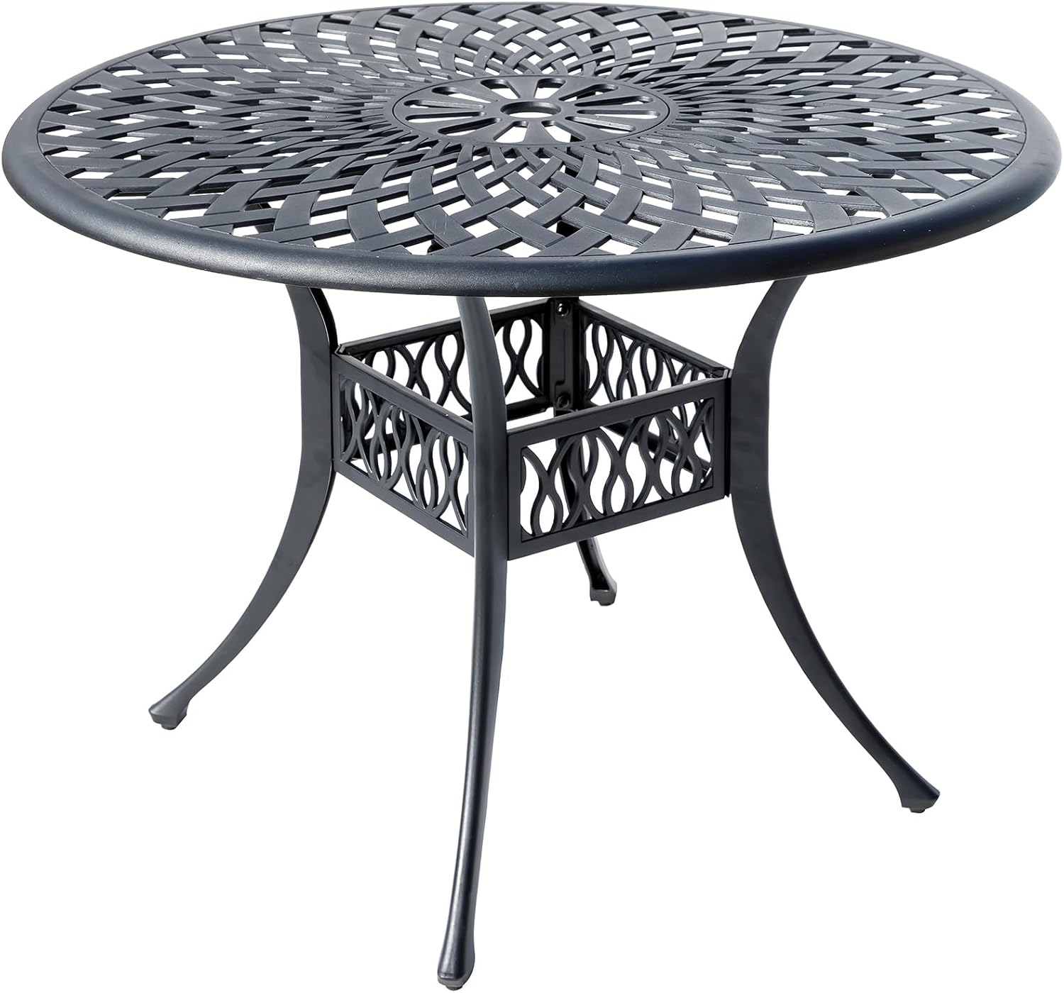 Withniture Outdoor Table Top Quality Materials Witniture focuses on bringing great outdoor products to the market. The outdoor table is made of strong and durable all-cast aluminum with a water-resistant and rust-proof bronze coating finish, we strict control of every production process. Focus on Customer Experience If you have any questions about our products or orders, you can feel free to contact us and we will provide you with professional and effective services. SPECIFICATION: Material: Cast AluminumTable: Φ42" x H28", 1.97inch diameter umbrella hole Max. load of table: 200 LB Note: Due to light or monitor reasons color will be slightly different. Products size are manually measured, there will be 1-2 inches of error, hope your understanding.