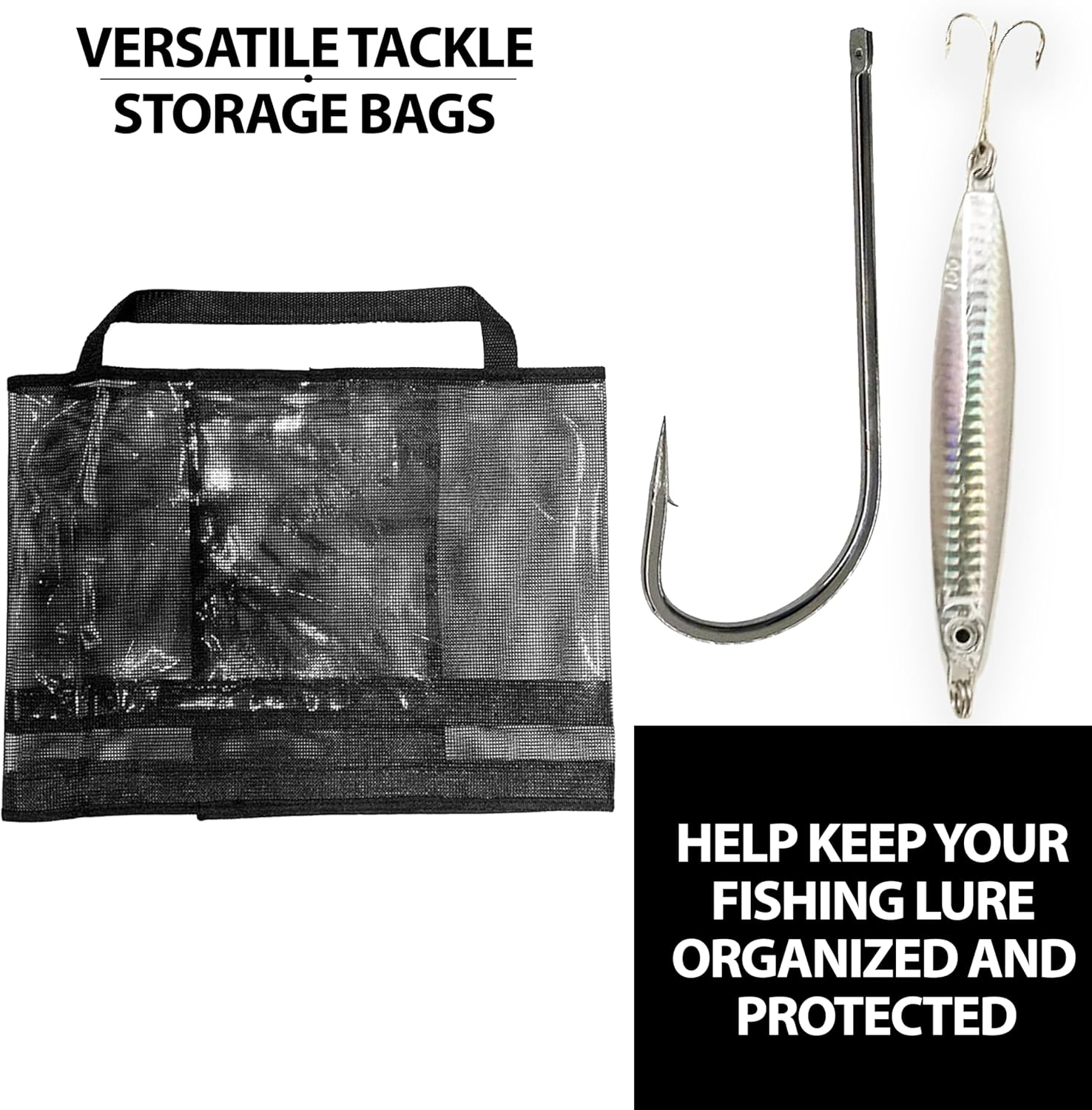 Upgrade your fishing tackle storage with the 42" Spreader Bar Lure Bag Black Pack of 4, the ultimate fishing lure bag solution for keeping your gear organized and protected. Designed with multi-compartment storage, these durable fishing lure bags feature a breathable vinyl back and a clear vinyl front, allowing you to efficiently sort your lures by size, style, and color. The mesh lure bag design enables quick and easy rinsing, making it perfect for both saltwater and freshwater fishing. Built for heavy-duty use, these compact lure storage bags keep your trolling rigs, Marlin lures, and deep drop jigs safe and secure, ensuring maximum protection during transport. Whether you're a seasoned angler or a weekend warrior, these portable lure organizers with shoulder straps provide hands-free convenience, making them the best lure bags for anglers. Elevate your fishing tackle storage solutions with this affordable fishing gear organizer, designed for efficiency, durability, and easy access on every fishing adventure.
