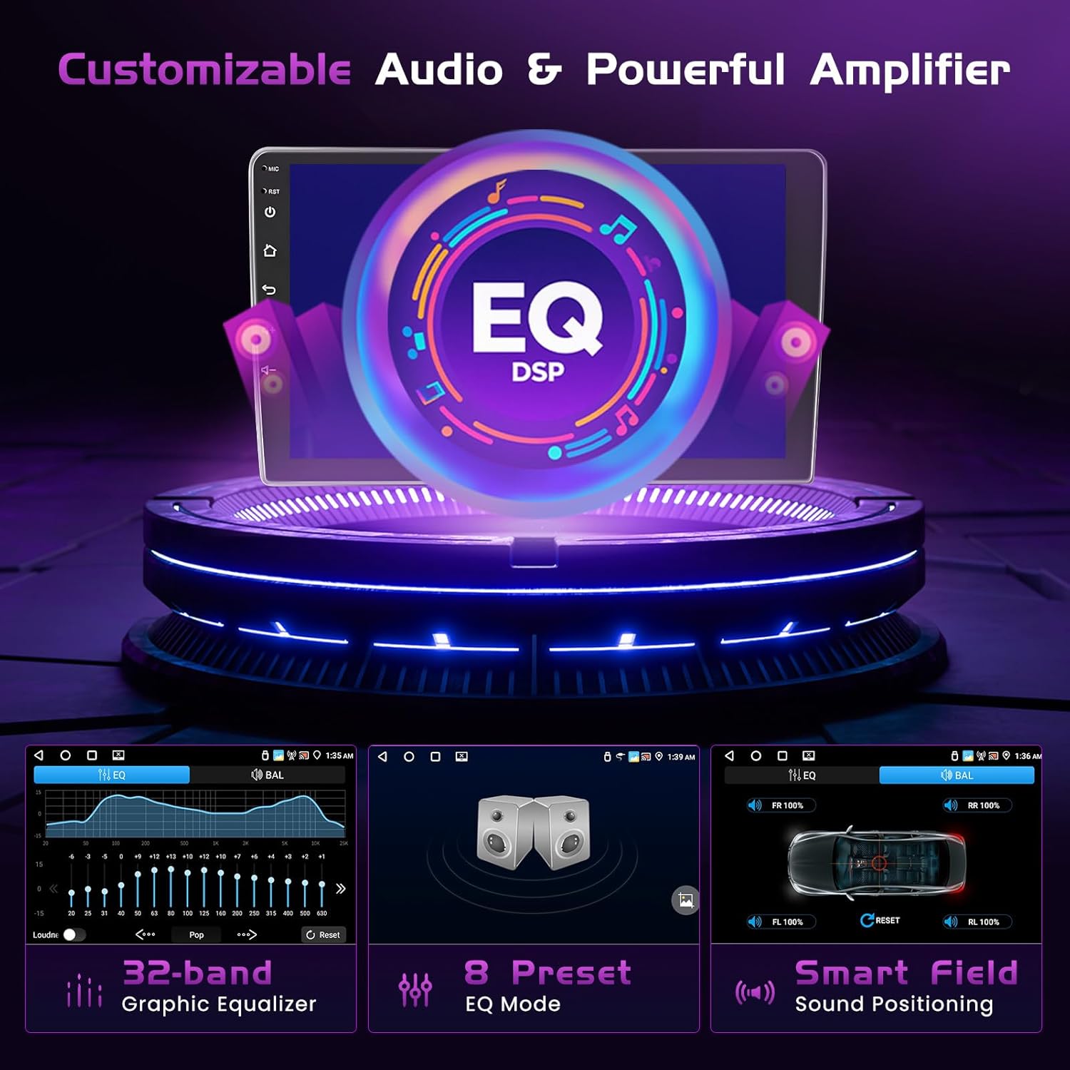 | Additional Features | Android, 4+64G, 9 inch IPS Touch Screen, Dual USB adapter input, FM/RDS Radio, 1080P HD Rear Camera, Mic, Steering Wheel Control,Split Screen, WiFi, GPS Navigation, 5.0 Bluetooth, 32 EQ, Wireless Carplay/Android Auto/Mirror Link |