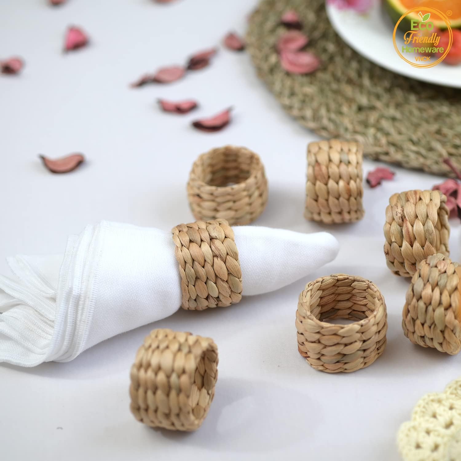 Handmade Braided Natural Napkin Rings Material: Natural Water Hyacinth Size: 1.8Lx1.2H Inches Ring Size: 1.5 Inches Package Content: 48 Napkin Rings Occasions: Table Decoration, Annual Dinner, Family Gathering, Birthday Party, Thanksgiving Day, Anniversary, Banquet, Prom Night, Halloween, Candle Dinner, Christmas, New Year, Picnics, Holidays, Wedding Reception, etc. PREMIUM HANDICRAFT The woven napkin rings are made of water hyacinth and water candles, and each piece of them is handcrafted and has its character. Sturdy and durable, reusable, and have a smooth surface that will not damage the napkins. UNIQUE WEAVING PROCESS The woven napkin holder is handmade with unique weaving techniques, which makes each napkin ring unique and unique. FITS ANY SPACE These rustic picnic napkin rings can be used for home, gala, picnic, bar, cafe, wedding party and floral decoration to make the table setting more delicate. In addition, it is especially suitable for wedding parties, receptions, birthday parties, festivals.๐ Click the โAdd To Cartโ Button Now to get your wonderful Napking Rings!