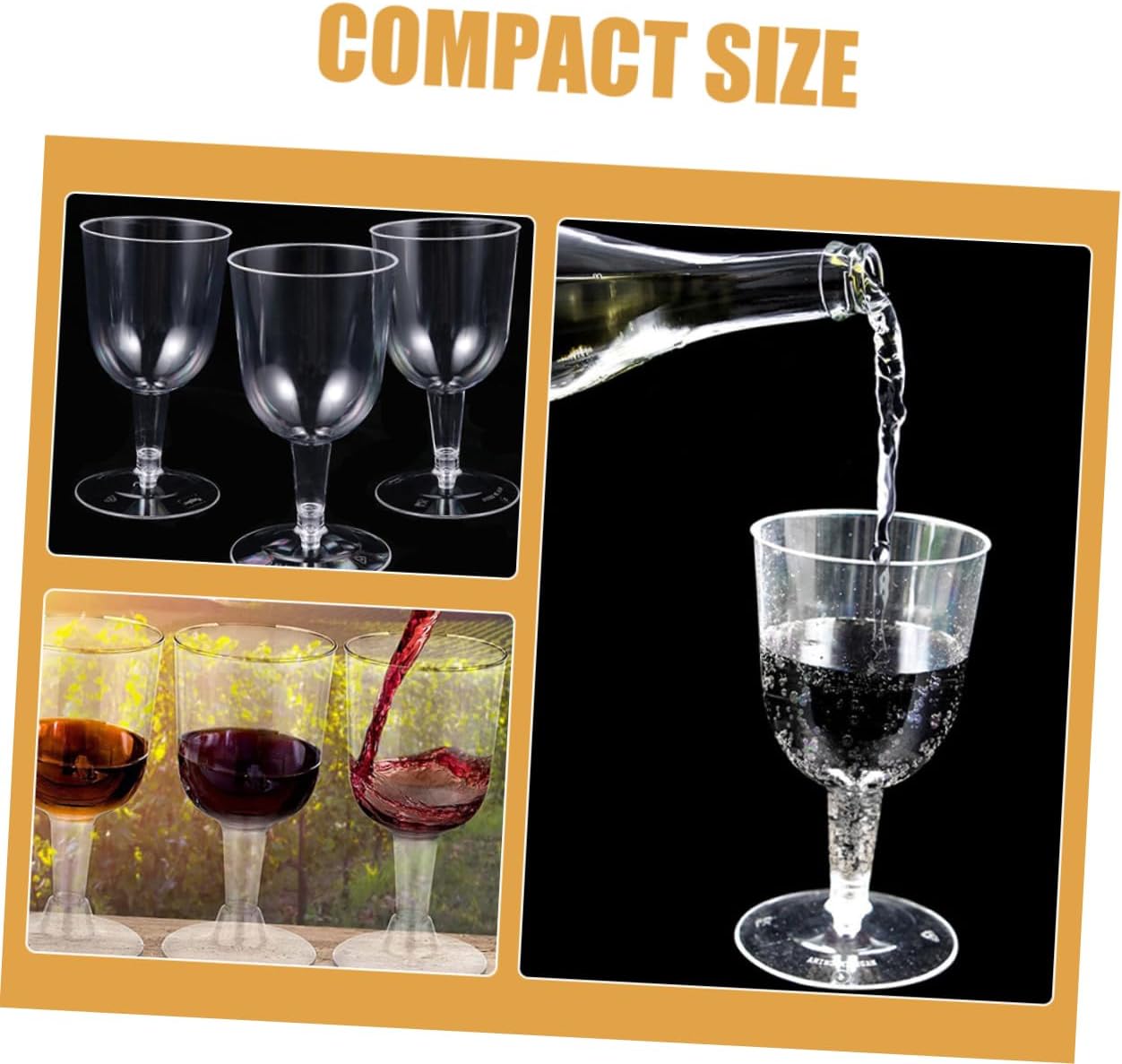 Package Include 48 x Wine Cups Characteristics - Perfect for any occasion: Whether you're hosting a dinner party or just enjoying a casual meal , these cups are perfect for any occasion transparent cocktails cup. -Material:Plastic outdoor drinkware -Capacity: 180ml/6oz drinking cup -Size:12.00X7.00X7.00cm/4.72X2.75X2.75in portable beverage container holder -Color:Transparent goblet dessert cups - The unique shape of these cups make them a fun and interesting addition to any table setting beverage drinking cups. - Portable and lightweight design, the plastic cup is convenient to carry to where you need reusable party cups. - Can be used for whiskey, juice, ice cream, salad, cold water and other drinks and foods clear party cups. -The bottom adopts a sturdy structure, which can be placed stably, bringing you more convenience beverage cups.Goods Descriptionreusable party cups This cup is made with stable material with great durability.clear cups for party Unique and creative shape design makes the cocktail cup creative and attractive.clear cup And these plastic cups are suitable for party, wedding, banquet, cocktail party and other suitable occasions to entertain your guests