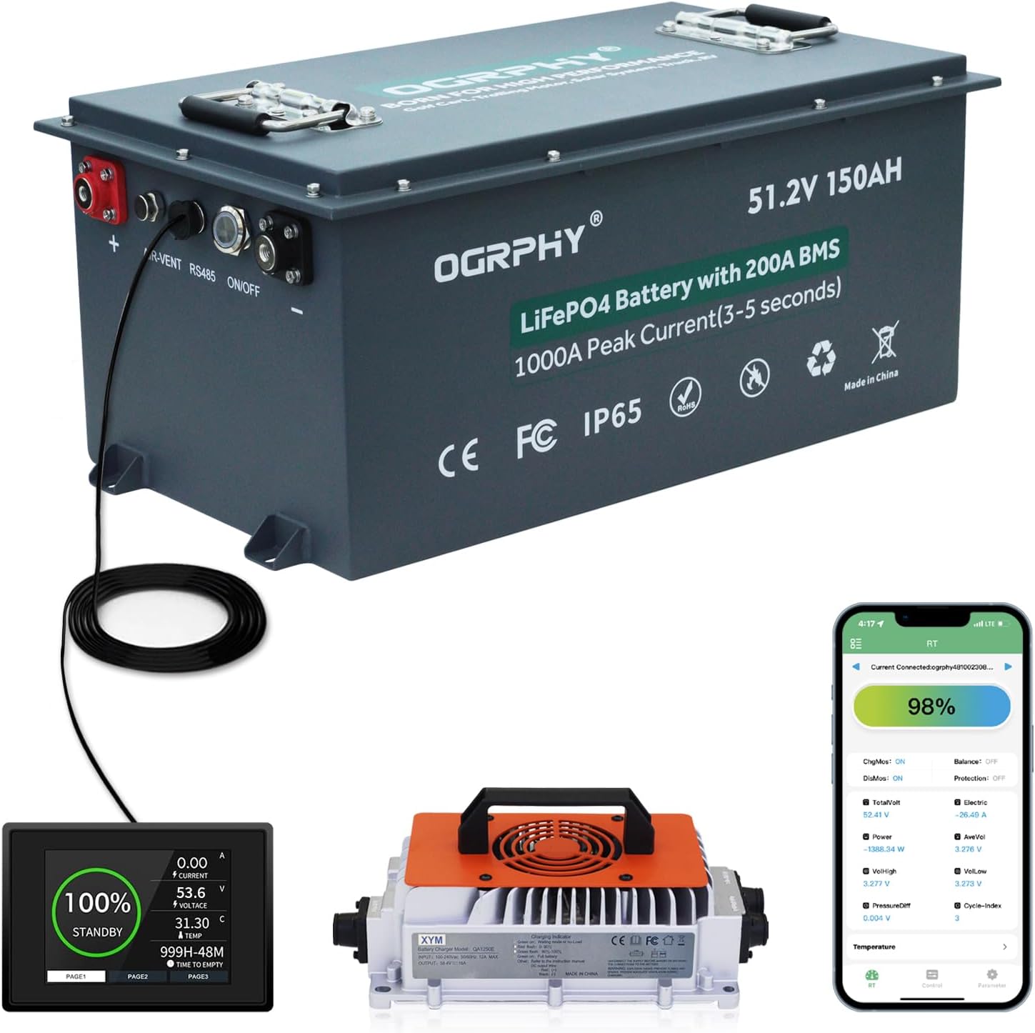 | Included Components | 1 x 12V DC Wiring, 1 x OGRPHY 48V 102Ah LiFePO4 battery with terminals, 1 x OGRPHY 48V 18A lithium battery charger, 1 x Retention strap, 1 x Touch Monitor & Monitor Cable & Monitor stand |