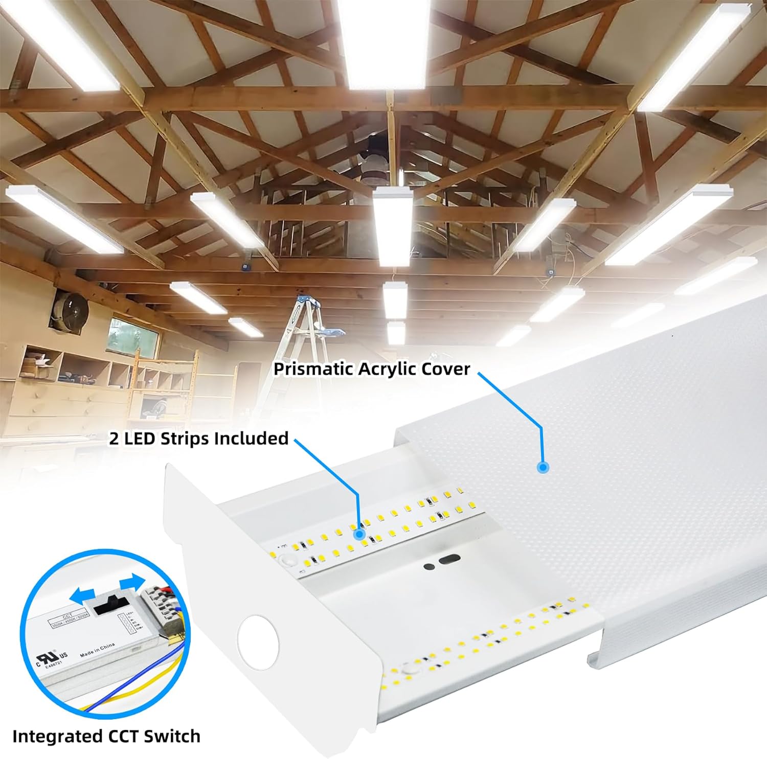 • CREATIVE DESIGN: This fluorescent light fixture constructed with Durable housing with a heat-resistant prismatic lens, engineered to withstand challenging indoor conditions for long-lasting performance.The wraparound light fixture uses cutting-edge LED technology to enhance energy efficiency. Wide 120° beam angle provides broad light coverage.