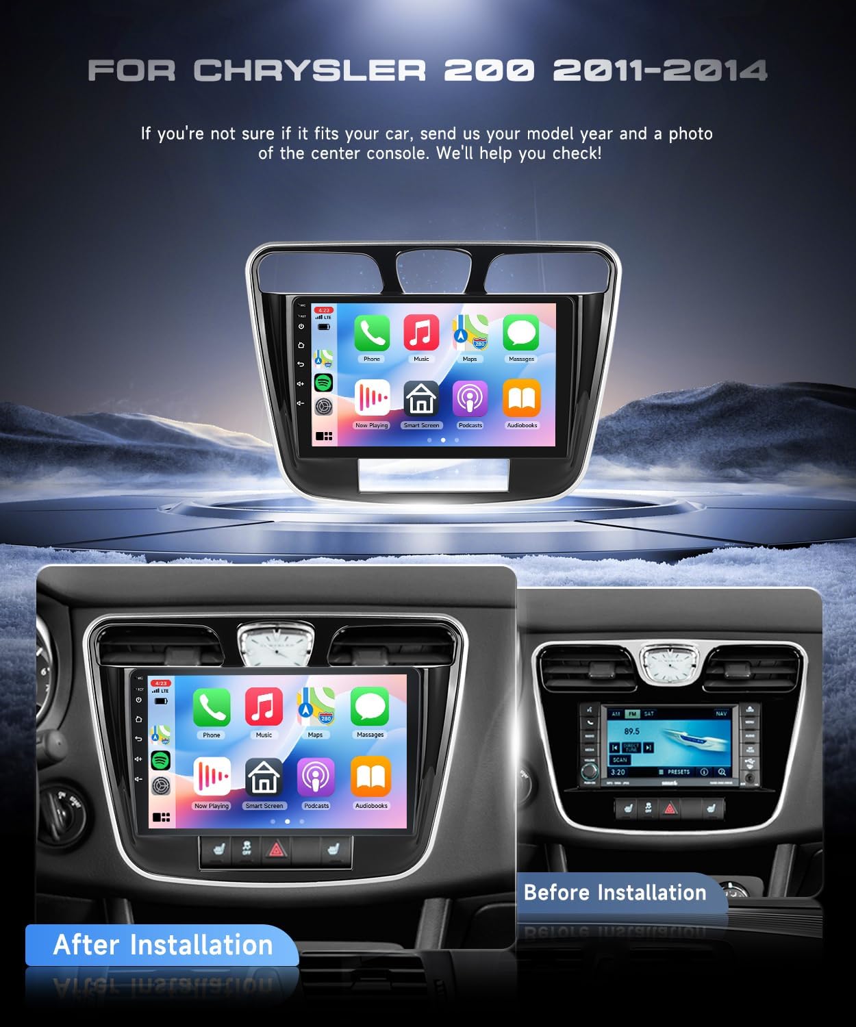 • Car Stereo For Chrysler 200 Upgrade: This car stereo radio is suitable for Chrysler 200 200C 2011 2012 2013 2014. Android 15 system, 4GB RAM+64 GB ROM 9-inch 1280*720 HD touch screen. It has dual USB ports, customizable UI, supports wireless mirroring connection and split screen, allowing you to operate more smoothly