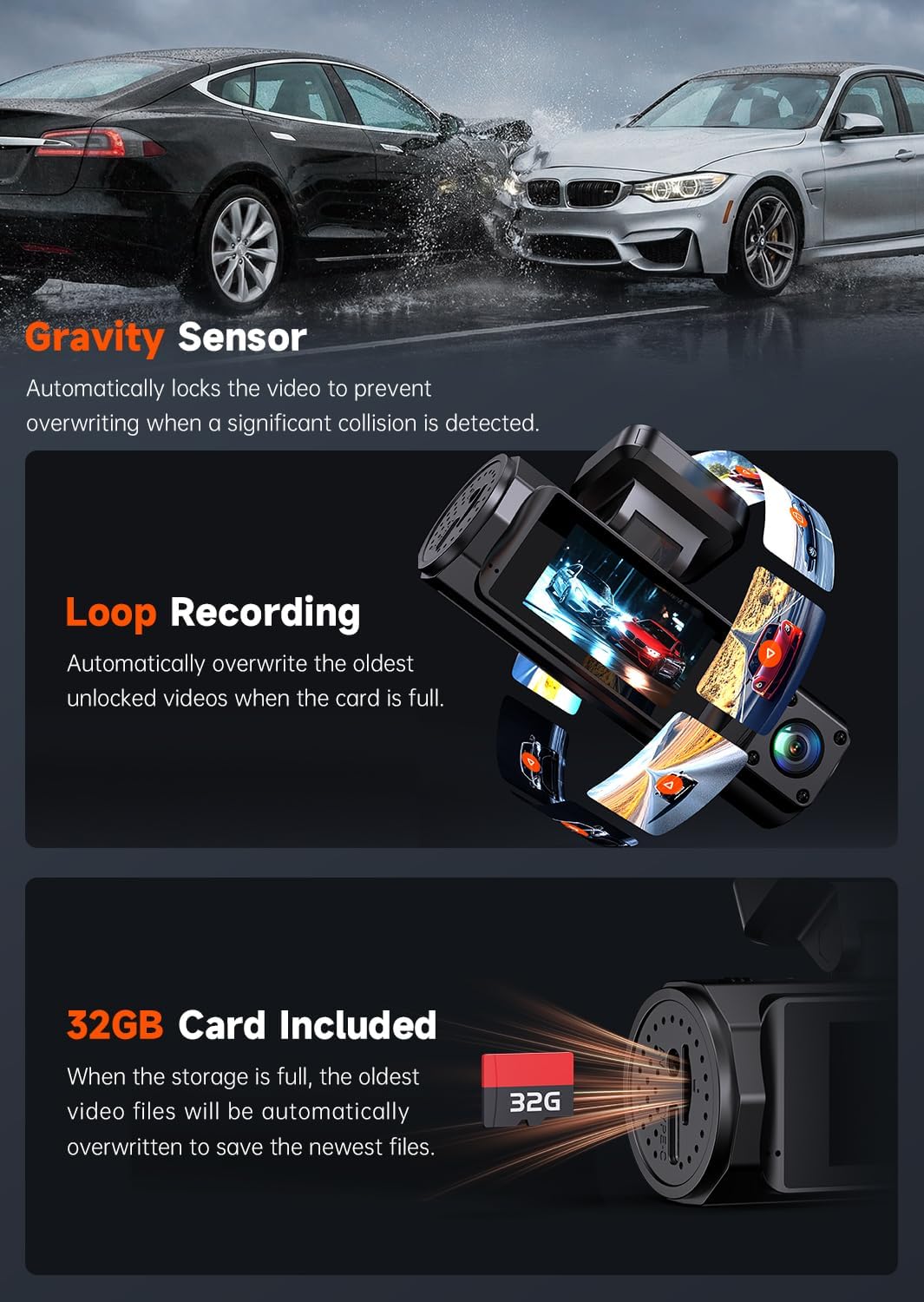 | Other Special Features of the Product | Built-In WiFi, Easy to Install, 4K, Support 256GB Card Max, App Control, G-Sensor, Loop Recording, Night Vision |