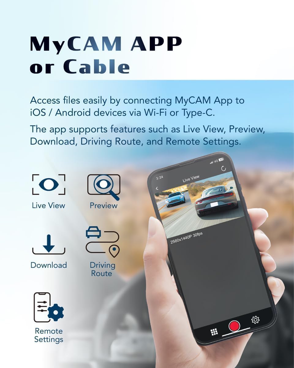 | Other Special Features of the Product | 8MP TRUE NATIVE 4K Front Camera, Built-in WiFi, FHD HDR Rear Camera, Loop Recording, Parking Mode, MyCam APP, G-sensor, Built-in GPS, Dual USB Adapter |