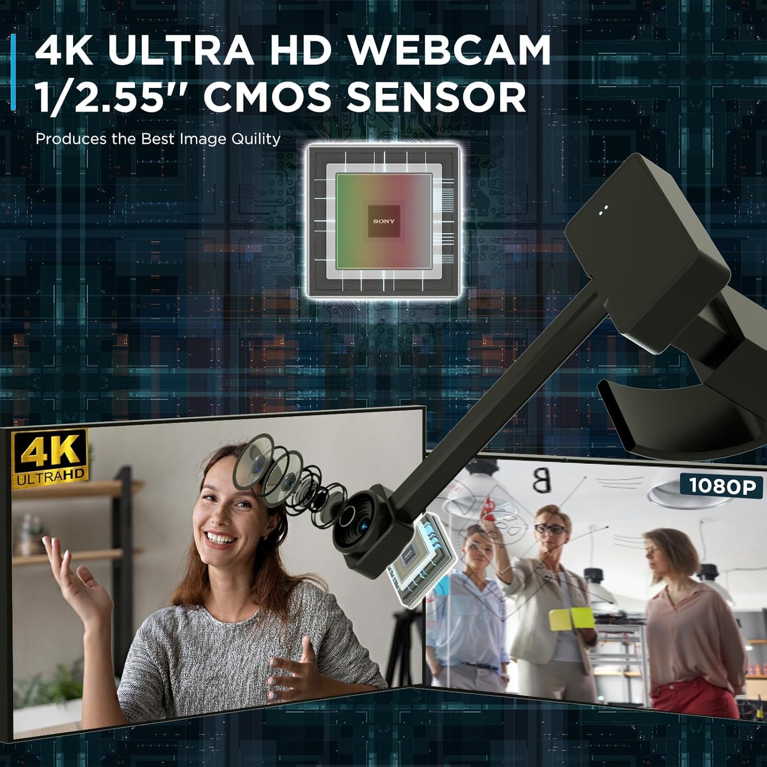 Enhance video conferencing with our 4K Ultra HD Webcam, providing exceptional clarity and natural eye contact for all users, ensuring you look and sound your best.4K Webcam ParametersResolution: 4K at 30fpsSensor: 1/2.55" CMOSPixels: 8 millionDigital Zoom: Up to 10XMicrophones: Dual noise-canceling microphonesCompatibility: USB A/Type-C; supports Windows XP/7/8/10/11, Mac OSFeatures: Remote control, auto/fixed focus, Zoomable,Privacy ProtectionWebcam for PC FeaturesStunning 4K Quality: Capture every detail in crystal-clear resolution for a professional look in any setting.Natural Eye Contact: Enhance your communication with improved eye contact, making interactions feel more personal.Remote Control Functionality: Easily adjust zoom, focus, and audio settings without interrupting your call.Dual Noise-Canceling Microphones: Enjoy clear audio, filtering out background noise for seamless communication.Auto Focus & Light Adjustment: Automatic focus and light correction ensure you look sharp and bright, even in challenging lighting conditions.Privacy Protection: One-click camera off feature allows you to maintain your privacy with ease.Plug-and-Play Compatibility: Simple setup with USB A/Type-C connections, ready to use with popular video conferencing apps.