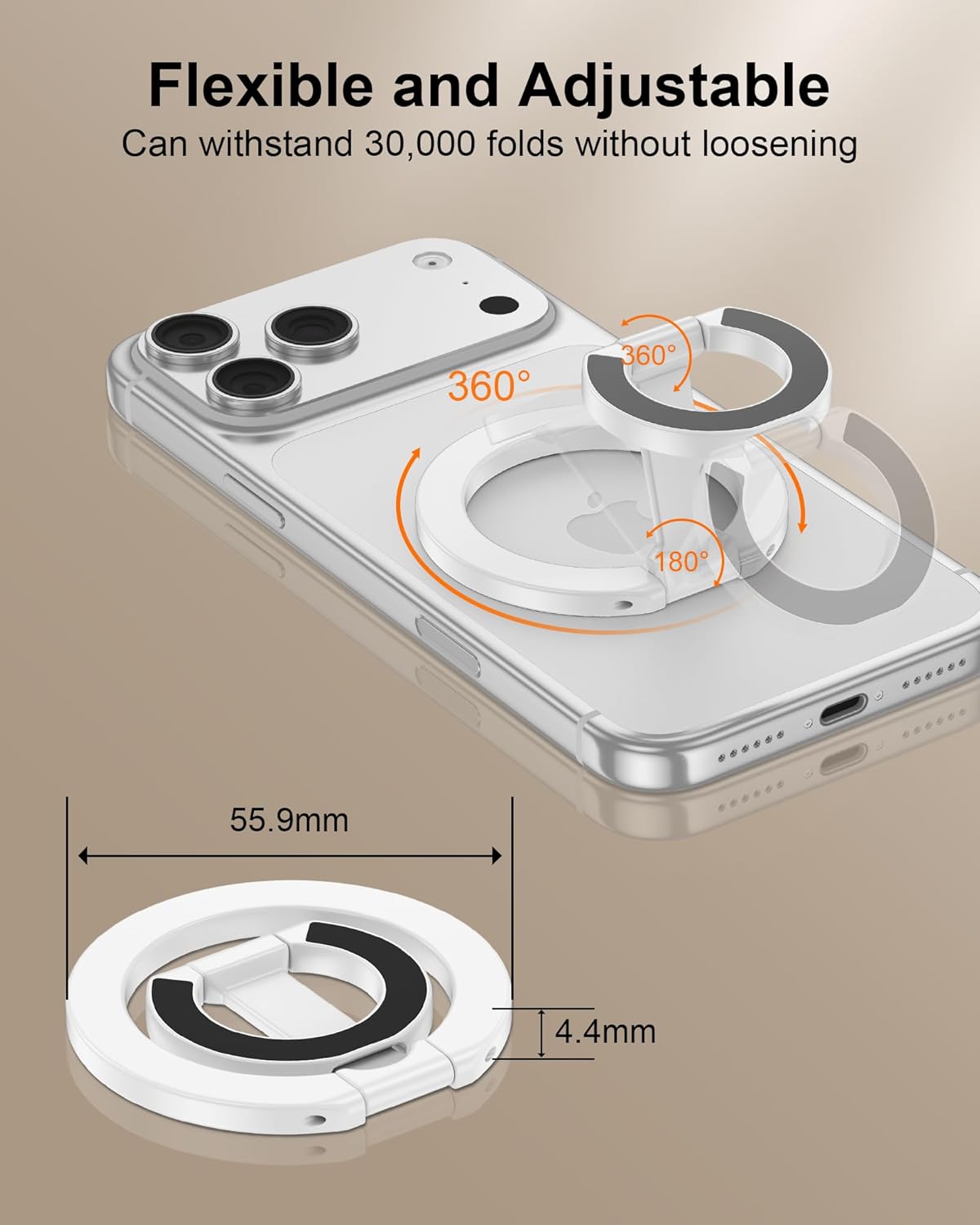 All in One Multi-View Stand Grip Perfectly suited to various situations. Use it as an iphone ring kickstand for effortless Vlogging or TikTok, and enjoy a secure, multi-angle adjustable MagSafe ring holder Dual-Sided Magnetic Design Designed for convenience, the ring phone holder securely attaches to various metal surfaces such as refrigerators, whiteboards, and car mounts 360° Rotation & 180° Flip Multi-angle adjustment provide flexible and comfortable hand grip and excellent viewing angle Durable Material Withstand over 40,000 times of folding without getting loose Ultra-Slim & Pocket-Friendly Designed to be sleek and fold flat against your phone, this grip won't bulk up your device or snag in your pocket or bag Please Note: This is a double-sided magsafe cell phone grip holder; Support snap directly to mag car mount; Not support for wireless charging; The position on the phone or phone case to attach the metal ring must be a hard material with a flat surface, NOT FIT FOR the soft rubber phone case (TPU/PP/TPE/Silicone). MagSafe-Compatible Device List: iPhone 17/ air/17 pro/17 pro max/16/16 Pro/16 Pro Max/16 Plus/15/15 Pro/15 Pro Max/15 Plus/14/14 Pro/14 Pro Max/14 Plus/13/13 mini/13 Pro/13 Pro Max/12/12 Pro/12 Pro Max/12 mini without MagSafe-enabled cases Non MagSafe-Compatible Device List: Attach with the metal ring iPhone SE/11/XS/Max/XR/X 8/8 Plus/7/7 Plus/6/6 Plus/5, Samsung Galaxy Z Fold7/Flip7/Flip7 FE/S25/S24/S23/S10/S9/S8/S7/S6, Note20, Google Pixel, and other devices. Package Included: Bordsek Magnetic Metal Ring x1 Bordsek Magnetic Finger Grip Holder for phone x1