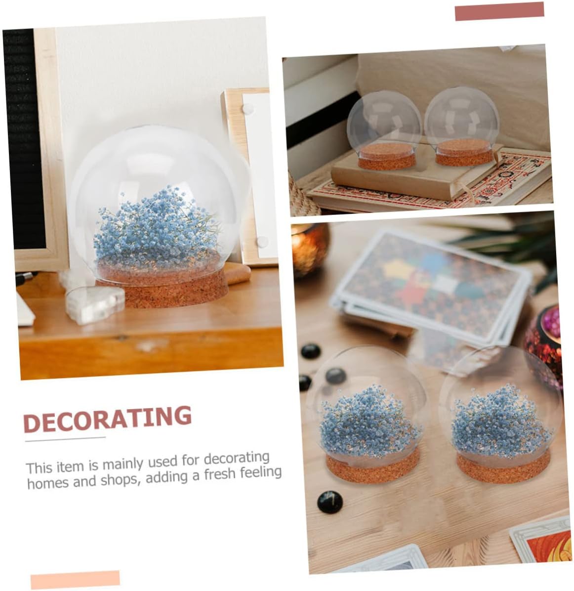 Package List 4 x Glass Dome with Cork Features -Size:13.00X13.00X10.00cm/5.11X5.11X3.93in Glass Dome -Color:Transparent Glass Dome with Base -Material:Wood, glass Creative Glass Cover Decor -Place the products in any place you want to decorate according to your needs and create your own handicrafts to enjoy the fun Preserved Flower Adornment. -Fine craftsmanship and details, ensure preserved flower glass cover practicality and popularity Transparent Glass Cover. -It can be used in a variety of places to increase the atmosphere of the place, can be used as decoration or props , are a choice Micro-landscape Vase. -Flat cork, the glass cover is very convenient to place it on any places, such as table, office Glass Cover with Cork. -This glass cover is made of and , practical design with beautiful appearance Flower Craft Desktop Decor.Goods InformationGlass Cover Features the and vivid preserved flower design, which is romantic and unique.Micro-landscape Vase It is a wonderful decor for the indoor and outdoor scene.Glass Display Cover This preserved flower glass cover with cork is a daily decor accessory that decorates and protects your preserved flower well