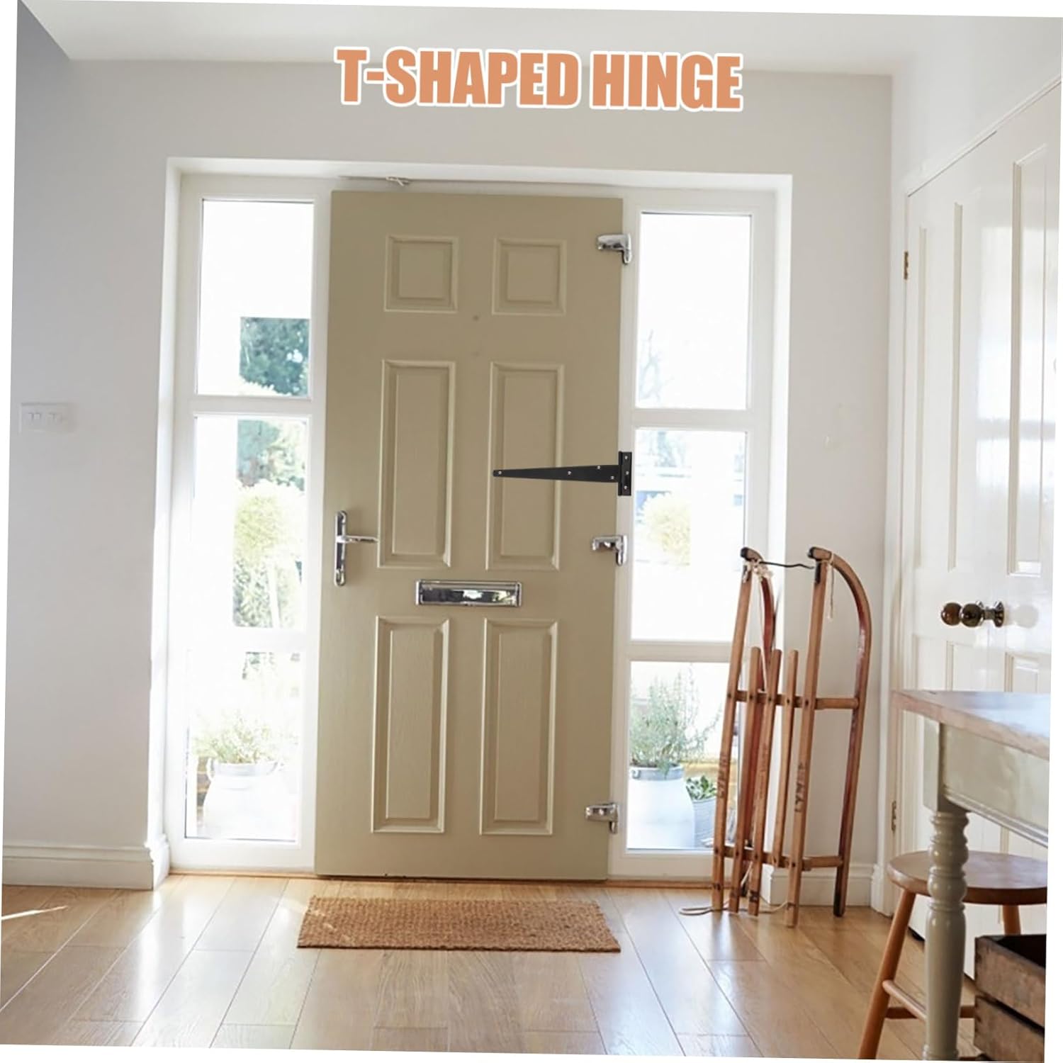 Package List 4 x Hinges Characteristics - Size 8inch: About 20x7.2x2.5cm/7.87x2.83x0.98inch gate Hinge. - Size 3inch: About 7.5x6.3x2.2cm/2.95x2.48x0.87inch 8 inches door hinges. - Material: Iron T shape hinges. - Size 5inch: About 12.5x7x2.5cm/4.92x2.76x0.98inch. - Color: Black. - Size 6inch: About 15.5x7x2.5cm/6.10x2.76x0.98inch. - Size 12inch: About 30x9.3x2.8cm/11.81x3.66x1.10inch. - 6 Positioned screw holes for stabler fixation use Furniture Hinges. - Made of iron material, with galvanized process, it have more longer service life than your imagination heavy duty hinges. - Rugged, , resistant, flexible and silent. - Easy to install and fast . Fit for gate/door open and close use . - Widely used in hotels, clubs, upscale clubs, wooden doors, background wall, counter doors, lightweight worktop or table and many DIY projects.Goods Description8 inches door hinges It have more longer service life than your imagination.gate Hinge It can be used in the cabinet door, room door or barn door.T shape hinges Made of iron material for durable and practical use.Furniture Hinges With 6 positioned screw holes for stabler fixation, easy to install, durable in use
