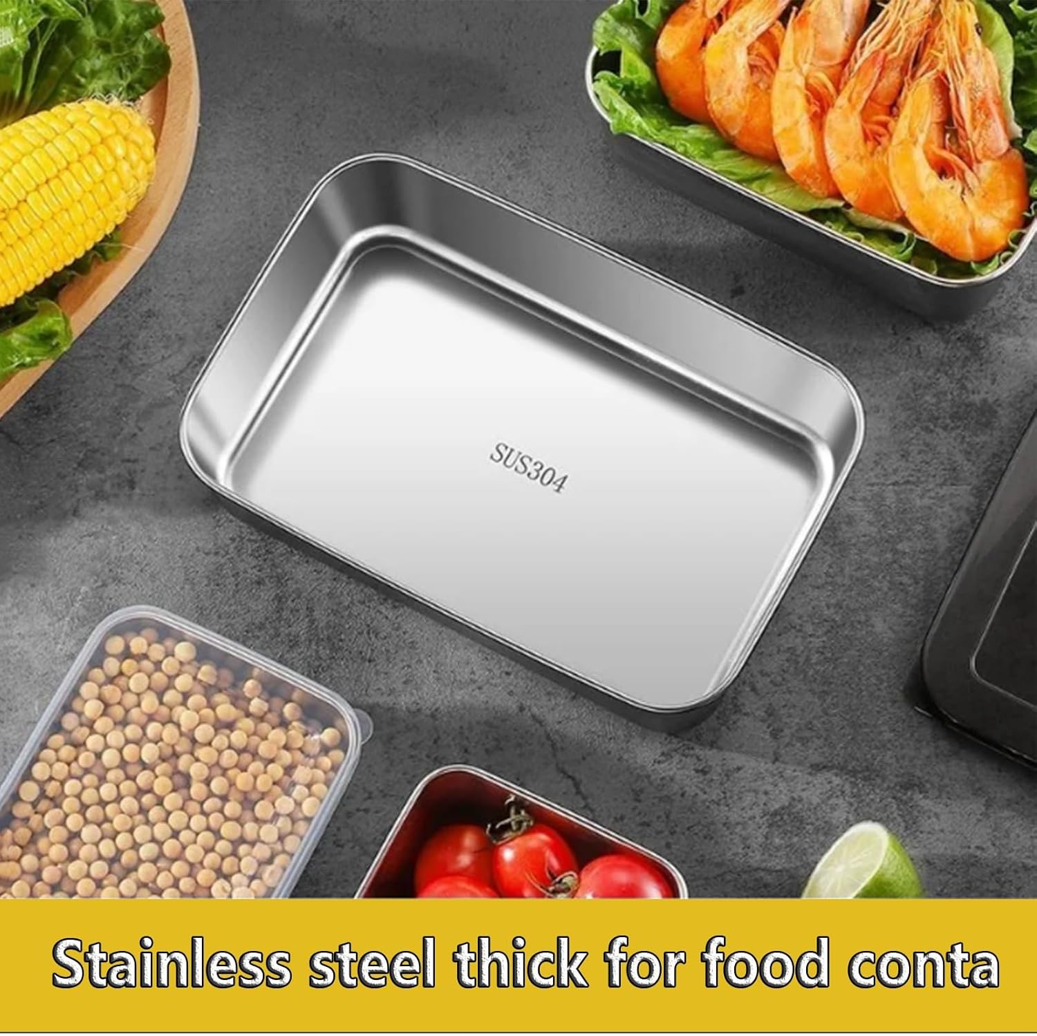 -- The stainless steel square plate with lid is resistant to high temperature baking and low temperature freezing, suitable for ovens, refrigerators, and freezers, meeting a variety of storage and cooking needs.- The square box with lid fits tightly, keeps the ingredients fresh, and is dust-proof and leak-proof, making storage safer.- The stainless steel storage box has a smooth surface, is not easy to absorb oil and odor, is easy to clean, and can be directly put into the dishwasher, saving time and effort.Specifications:Material: Food grade stainless steelShape: SquareSize: S: 20 * 14.8 * 6.2cm/7.8 * 5.8 * 2.4 inchesM: 25 * 20 * 5.5cm/9.8 * 7.8 * 2.2 inchesL: 30x25x5.5CM /11.8*9.8*2.2 inchesPackage Contents:4 * Stainless steel square plate