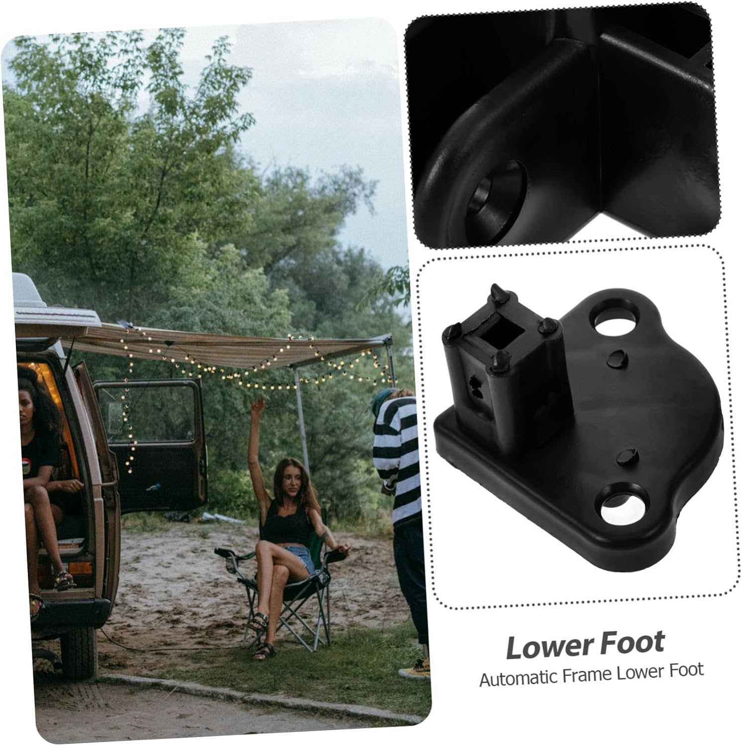Package List 16 x brackets Characteristics -Easy-to-install tent connection bracket for versatile outdoor applications: conveniently attachable tent connection kit suitable for various outdoor uses universal awning mount. -Splashproof design ensures use in any weather: designed to withstand all types of weather conditions, its durability rv awning bottom bracket. -Material:PP tent accessories -Compact and lightweight for and storage: the Tent Foot Base is designed to be compact and lightweight, allowing for effortless transportation and storage rv awning bottom mounting bracket. -Color:Black camper awning brackets -Automatic foot design provides stable support and prevents : equipped with an automatic foot design that offers reliable stability and prevents any potential collapsing tents spare support brackets. -Size:6.80X6.80X4.00cm/2.67X2.67X1.57in rv bottom mounting bracket -This RV Awning Bottom Bracket Foot is constructed using PP material, components camper awning bracket.Goods Descriptionbottom awning mounting bracket The craftsmanship can serve you well without breaking easily.outdoor awning bracket This Tent Replacement Base is a very practical accessory for your needs.Bracket for RV awning The awning bracket is convenient and practical, with great texture, and can be used long time without being easily damaged