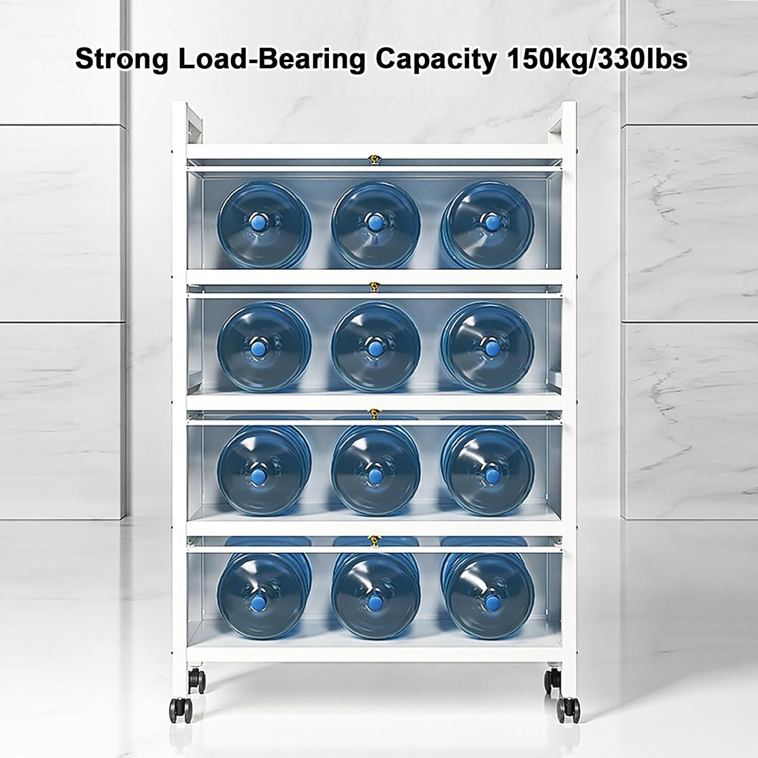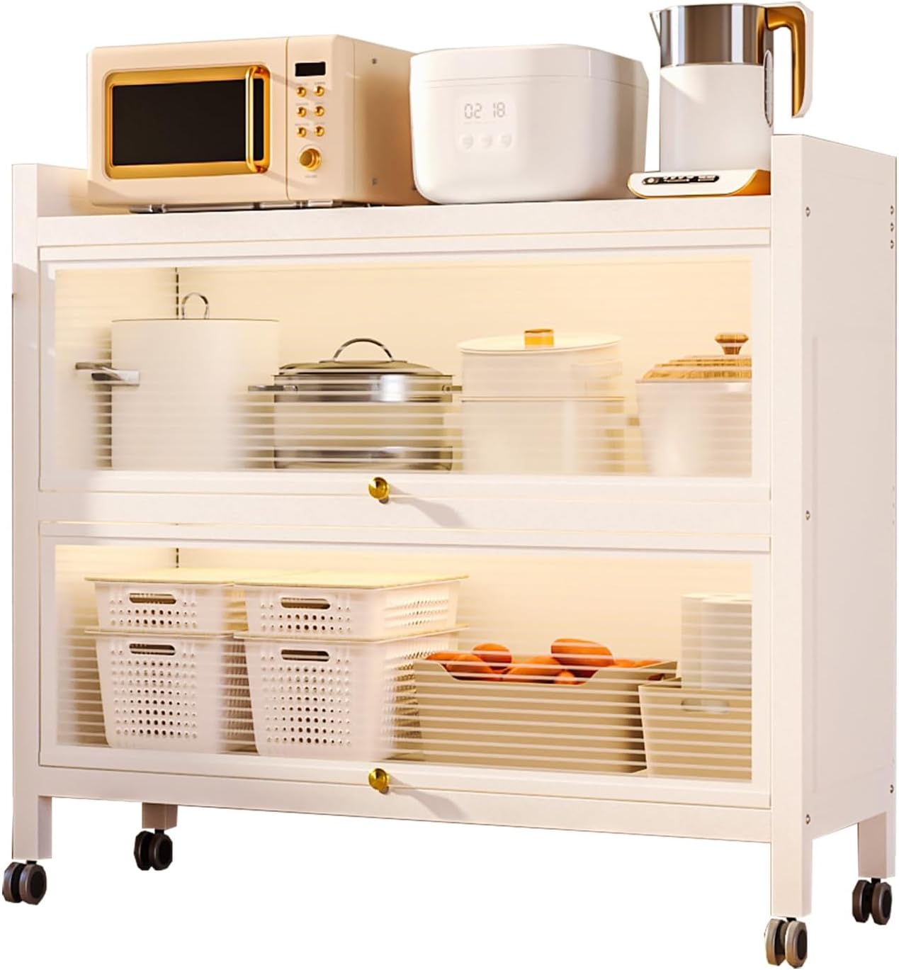 Upgrade your kitchen organization with our versatile Kitchen Storage Cabinet, designed to meet all your culinary and storage needs. Featuring four durable universal wheels, this coffee bar cabinet effortlessly rolls from room to room, making it ideal for hosting or daily use. With spacious options of 3, 4, or 5 cabinets, you can easily keep your kitchen essentials, from spices to cookware, neatly stored and dust-free. This cabinet serves multiple purposes as a kitchen baker's rack, microwave oven stand, or office storage solution, blending seamlessly into any decor. Its classic and stylish design enhances your kitchen, dining room, or pantry, providing both functionality and aesthetic appeal. Key features include: - Easy assembly for hassle-free setup - Modern design that complements any space - Simple to clean surfaces for maintenance - A balanced mix of open and closed storage for versatile organization - Suitable for living rooms, kitchens, and dining areas Product details: - Color: White - Number of Shelves: Available in 3, 4, and 5 configurations - Max Load Capacity: Up to 200kg/440lb - Assembly Required: Yes - Overall Size Options: - 3 layers: 40x36x85cm, 60x36x85cm, 70x36x85cm, 80x36x85cm, 100x36x85cm - 4 layers: 40x36x120cm, 60x36x120cm, 70x36x120cm, 80x36x120cm, 100x36x120cm - 5 layers: 40x36x152cm, 60x36x152cm, 70x36x152cm, 80x36x152cm, 100x36x152cm Package includes: - 1 x Kitchen shelf - 4 x Hooks Enhance your kitchen's functionality and style with our Kitchen Storage Cabinet, the perfect addition to any home.