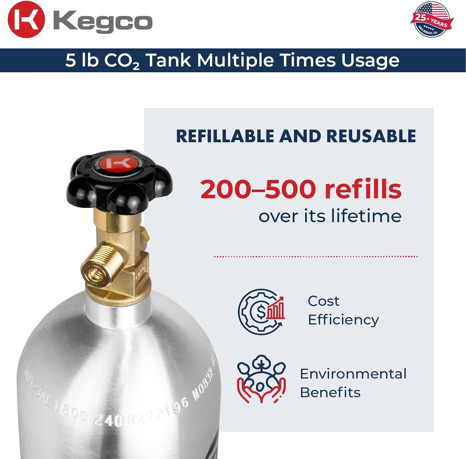 The Beverage Factory offers only brand new aluminum Co2 Tanks. We do not sell reconditioned steel tanks. Every Co2 cylinder is produced from high strength aluminum alloy 6061-T6. These tanks are popular because they are not as heavy as steel tanks and do not rust. The service pressure is up to 1800 PSI/124 BAR with a test pressure of 3000 PSI/207 BAR. These cylinders are stamped with required U. S. Department of Transportation a Markings. The 320 Valves are CGA approved, and have a male thread for Co2 Regulators.