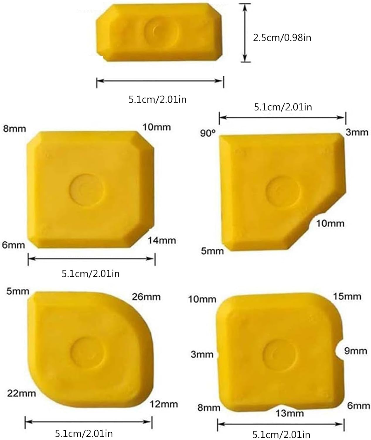 5 Pack Caulking Scrapers Set for Bathroom, Kitchen, Floor, Window, Sink Joint Sealant Grout Finishing Tool Features: Silicone, this tool set includes five different shape for precise filling Suitable for enthusiasts and professional, for various home project Use our tool set to fix gaps in wall, floor, and window in various setting This set for silicone meet all of your Caulking removal need Help save sealant without tape when you apply it for sealing work Specifications: : Silicone Size: About.2.01x2.01x0.98 ' ' Color: 4 Option Quantity: 5Pcs Package Includes: 1 Set Caulking Tool ( 5Pcs) Note: 1.Please allow 1-2cm errors due to manual measurement, make sure that you donot mind before you order 2.Due to the differences between different monitors, the picture may not reflect the actual color of the item