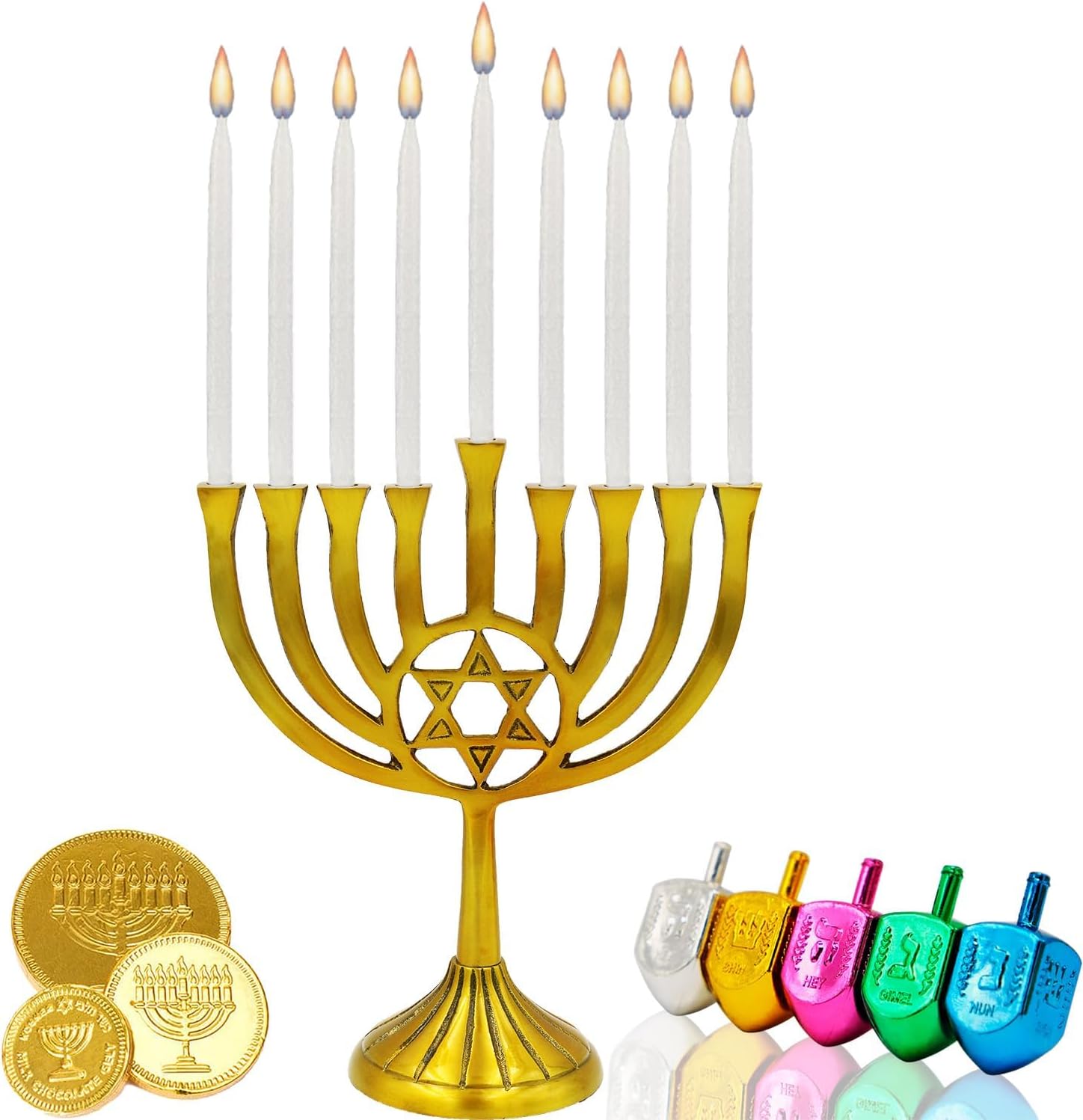 WHITE DECORATED: These Premium Dripless Frosted White will really brighten your Hanukkah experience. GOOD FOR MENORAHS FOR 8 NIGHTS: The Candles are sized 3/8” diameter at the bottom to accommodate most Candle Menorahs with ease. Candles are 5 1/2” long for an elegant slender display. 45 Candles Enough for all 8 nights including the Shamash Candle. CERTIFIED KOSHER: These candles meet all Jewish law requirements to be lit in a menorah, and are designed to burn for more than 60 minutes. QUALITY CRAFTED: Expect nothing less than the best from The Dreidel Company. Our Chanukah Candles burn clear & bright with no double wicks and minimal wax drippings to keep your Menorah clean. BEST CHANUKAH PRESENT: A great Jewish and Judaica gift, these candles make the perfect chanukah gift for kids and adults, and they can be use all year long for all kinds of occasions and parties.