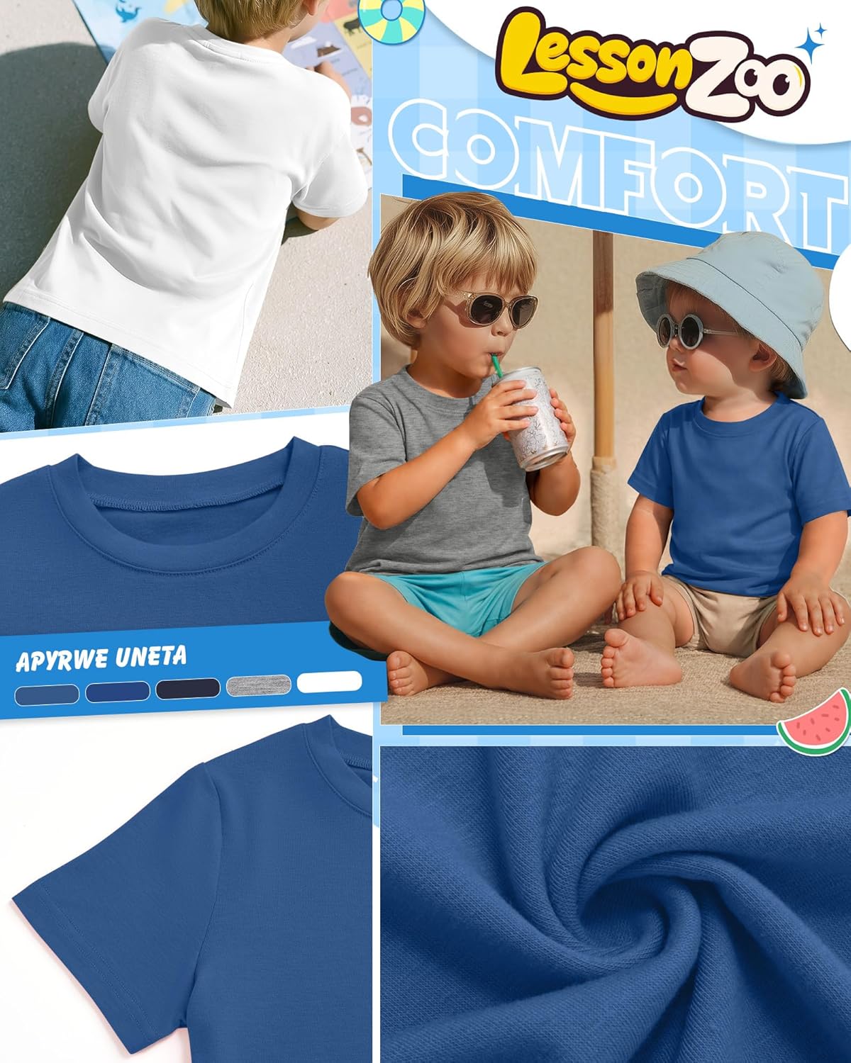 Features: Solid Color Design: These toddlers' plain t shirts are simple, stylish, versatile, dirt-resistant, easy to match and care for, reduce skin irritation, and combine comfort and safety with practicality, making them a must have in a boy's wardrobe. Easy Care: Machine washed or hand washed in cold water on a gentle cycle, hang to dry, and will not shrink easily after multiple washes. Do not bleach. Specifications: Material: 65% Cotton, 30% Polyester, 5% Spandex Package includes: 5 Pack baby boys' short sleeve tee Notes: Manual measurement, please allow slight errors on size. The color may exist a slight difference due to different screen displays