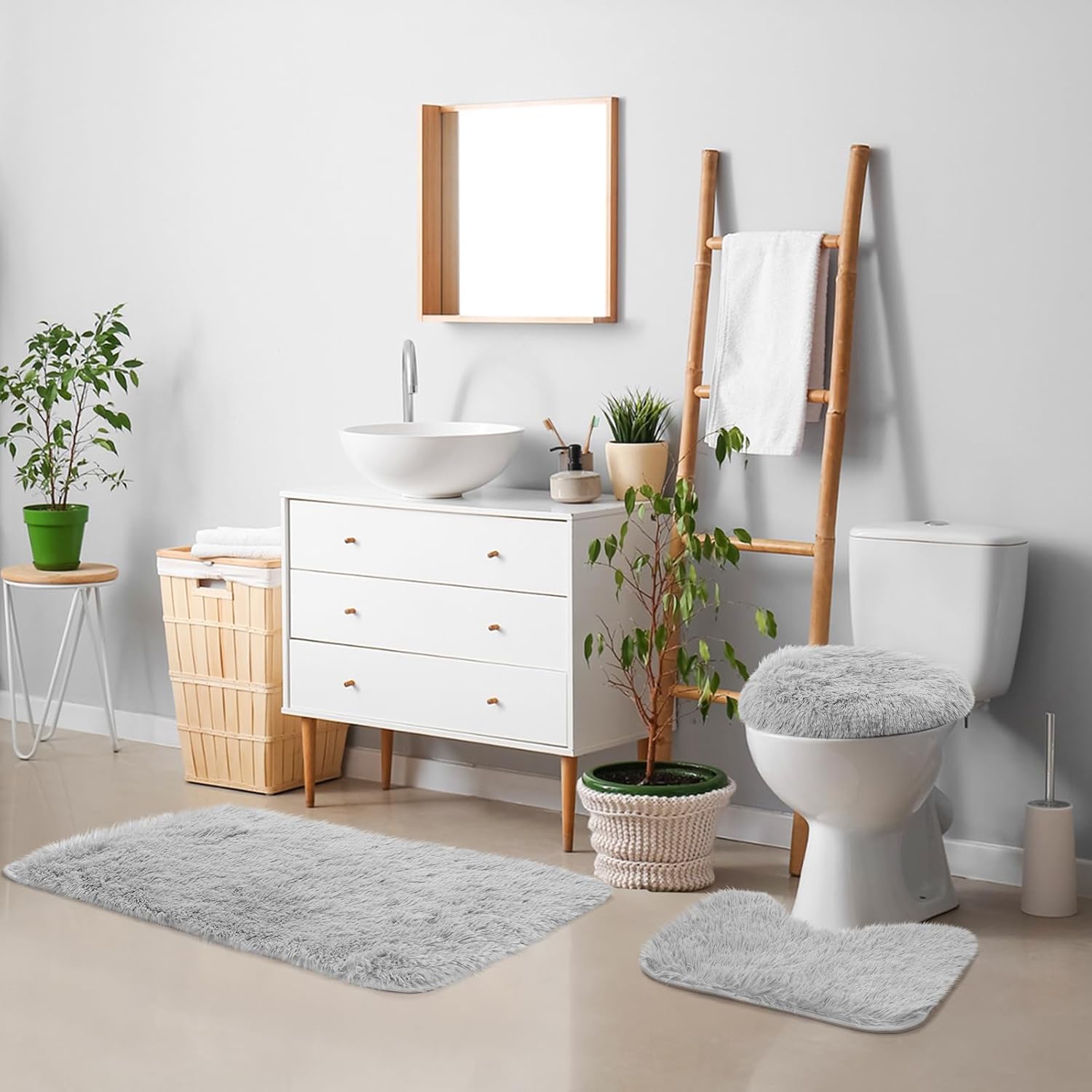 | Included Components | 1 x Waffle textured shower curtains,1 x Waffle textured bath mat ,1 x Bathroom mat ,1 x U shape rug ,1 x Toilet lid cover,>12 x Plastic hooks |