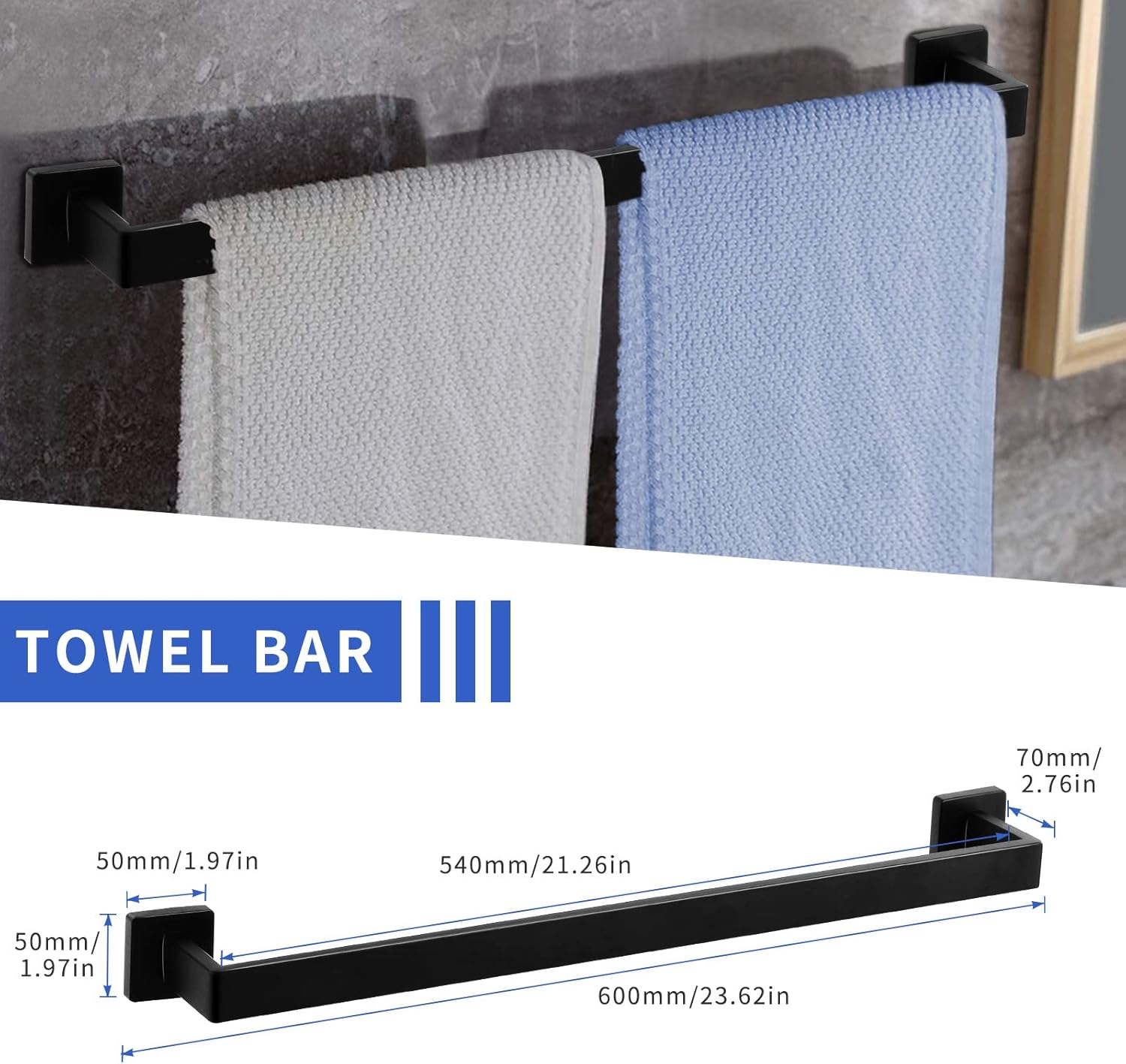 | Included Components | towel bar, toilet paper holder, square towel ring, towel hooks. |