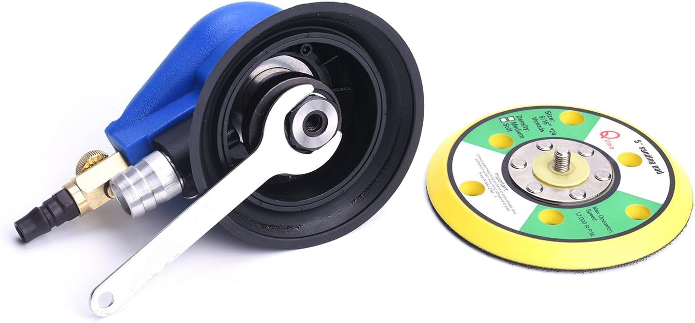 Welcome to our shop! :) ZHONG AN AIR TOOLS is a professional pneumatic tools shop. We provide decent tools with reasonable price.If you have any questions please contact me. I will reply within 24 hours and try my best to assist you. Description ZHONGAN 5" air palm sander tool, professional high quality,compact structure,scientific design and offers greater comfort and control for you.Ease your work with this portable tool for home and outdoor. Application Ideal for removing solder joints and rust spots on metal products, deburring furniture and woodwork, mold manufacturing, automotive refreshing and detailing work,etc. Feature ★ Heavy duty, lightweight compact design for greater comforts and control ★ Easy to handle, provide high-quality finish an auto body and woodworking ★ Ergonomic grip provides more comforts and control ★ Easy on/off switch ★ High rotating speed, work more quick and efficient Specification 1.Max Speed: 12000RPM 2.Sanding Pad: 5"(125MM) 3.Air Inlet: 1/4" 4.Suitable Working Pressure: 90PSI 5.Air Consumption: 4 CFM ※Package includes: 1 x 5" Air Palm Orbital Sander 1 x Vacuum bag 1 x Vacuum pipe 1 x 1/4 NPT quick connector 1 X Wrench Kindly reminder: Before you use the air sander, please add 5-8 drops of oil from air quick connector and please allow the tool to run for a few seconds after filling to make sure it works well.