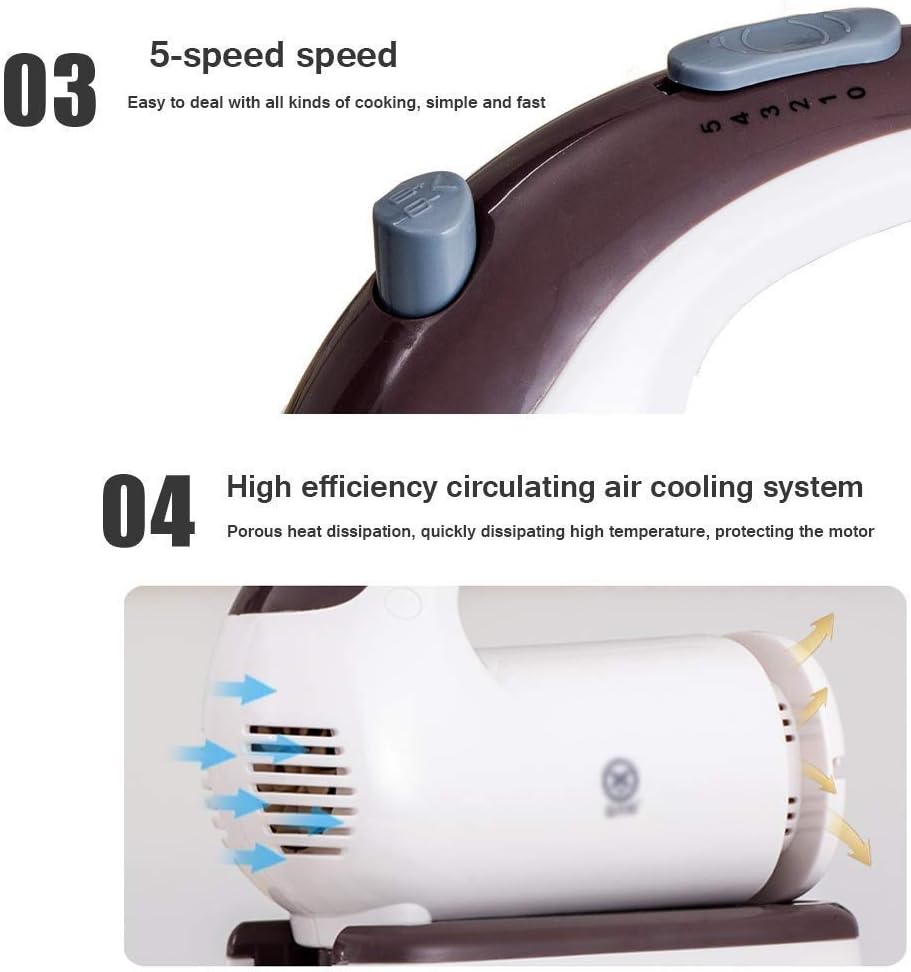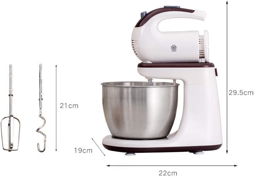 5 Speed Hand Mixer Use the Hand Mixer to mix egg whites, cake mixture and batter to optimum consistency. The Hand Mixer comes in a solid white glossed body and features an easy release button for simple beater removal. The five speed settings mean that you can select the appropriate speed for the food type and create accurate results every time. The Mixer brings everyday style and value to the kitchen. Specification: Name: Handheld standing dual-use egg beater Power: 300W Material: ABS + stainless steel Power supply: 110V-240V/50Hz Gear position: 5 files Accessories: egg stick * 2 sticks + face stick * 2 sticks Capacity: 3L Advantage: 1. Comes with 3L stainless steel egg beater 2. Thickened ABS shell 3. Five-speed speed regulation 4. High efficiency circulating air cooling system Service tenet: efficient, responsible, serious Service objective : Only serve customers If you have any questions after receiving our products, please contact us in time, we will reply and solve the problem within 24 hours. Thank you for choosing and purchasing our products. Your satisfaction is very important to us. Happy shopping. It is compact, light and easy to use. The handle design is ergonomic, comfortable to hold, saves time and effort, and is a good helper for the kitchen.