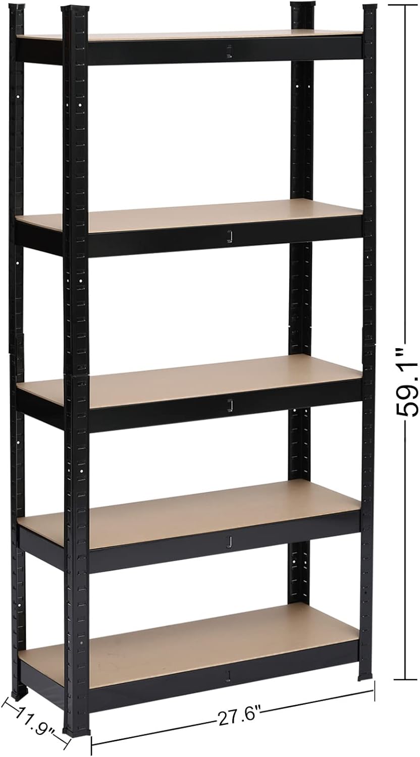 | Model Name | 5-Tier Heavy Duty Metal Shelving Rack Unit Garage Storage Shelf Black - 11.9" L x 27.6" W x 59.1" H - 150lb Load Per Shelf |