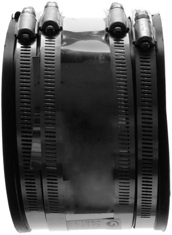 The Fernco 5 in. Flexible PVC Coupling is tested for underground use. It features a stainless-steel shield and molded-in bushing to provide extra rigidity. Connection type is mechanical.Features: Made of flexible PVC with a stainless-steel shield and molded-in bushing for extra rigidityStainless-steel bands, nuts and housings are corrosion resistant and rustproofCompatible with PVCProvides a quick connection for pipes of the same or different sizes and materialsRated for above or below ground applicationsTested to 4.3 maximum test pressureSpecifications: Product Type:Coupling Size:5" x 5" Min Temp (F):-30F Max Temp (F):140°F Temperature Range (F):-30ºF to 140ºF Torque:60 lb-in