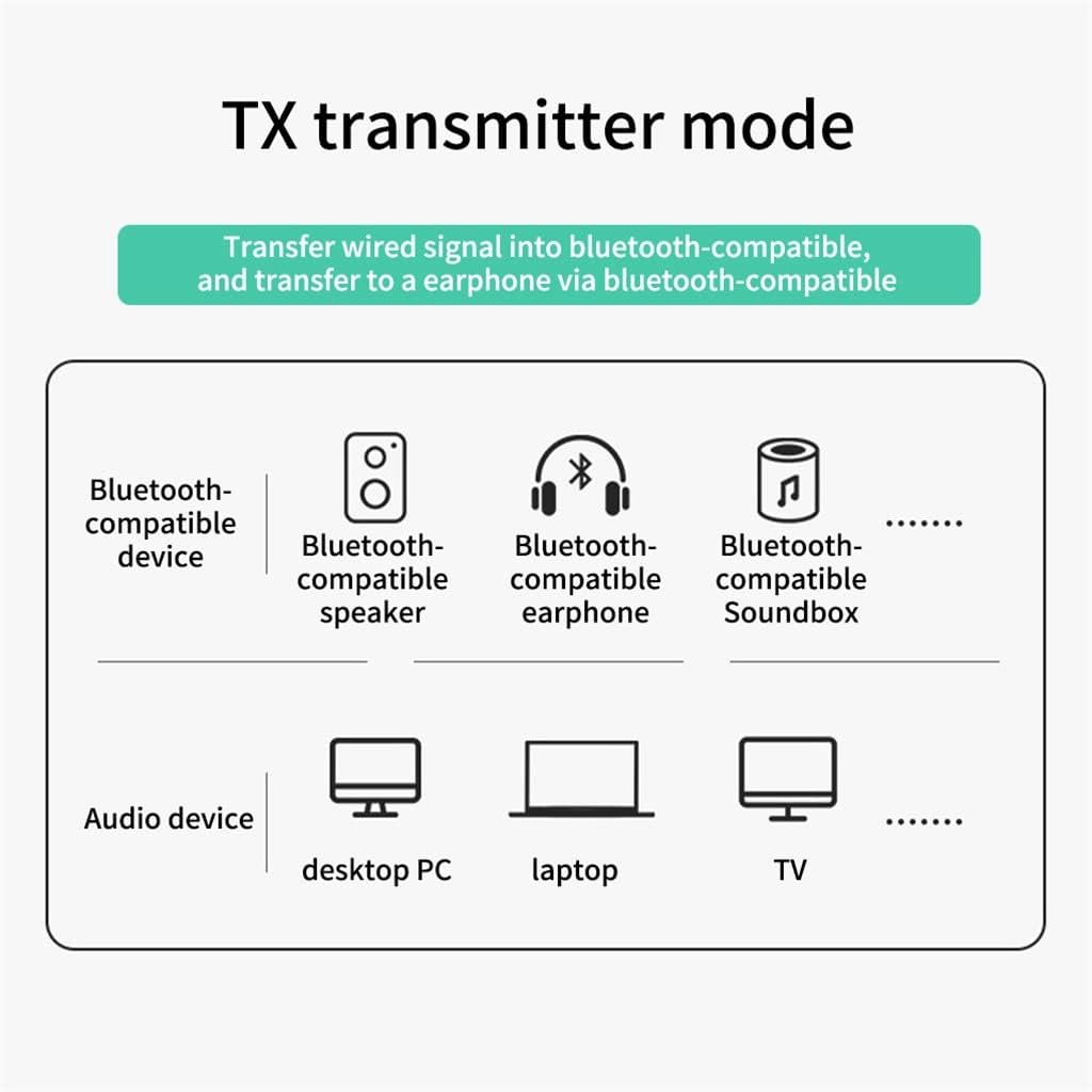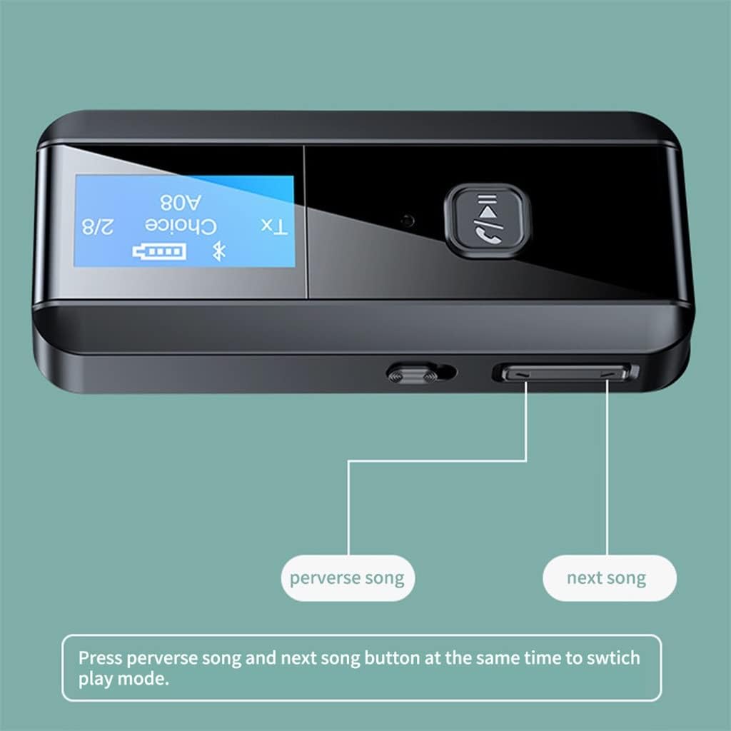 Freely switch: This audio adapter features two functions, receiver and transmitter. And you can freely switch between them.Digital display: This -compatible transmitter receiver is designed with a large screen that can display 8 devices at the same time.Application: Allow your wired speakers to receive compatible signals, or allow your TV to transmit compatible signals.Good sound quality: This transmitter receiver can provide stereo sound and ensure a low delay music streaming.Rechargeable: This -compatible audio adapter can be powered and charged via type-c and can be used while being charged.Specification:Color: Show .Size: Show .-compatible version: 5.0.Transmission rate: 100Mbps.Transmission distance: 10m.Working frequency: 2400Mhz.Power port: Type-c, 5V.Battery: Lithium battery(Built-in).Note:Due to the different monitor and light effect, the actual color of the item might be slightly different from the color showed on the pictures. Thank you!Please allow 1-2cm measuring deviation due to manual measurement.Quantity : 1 PCS