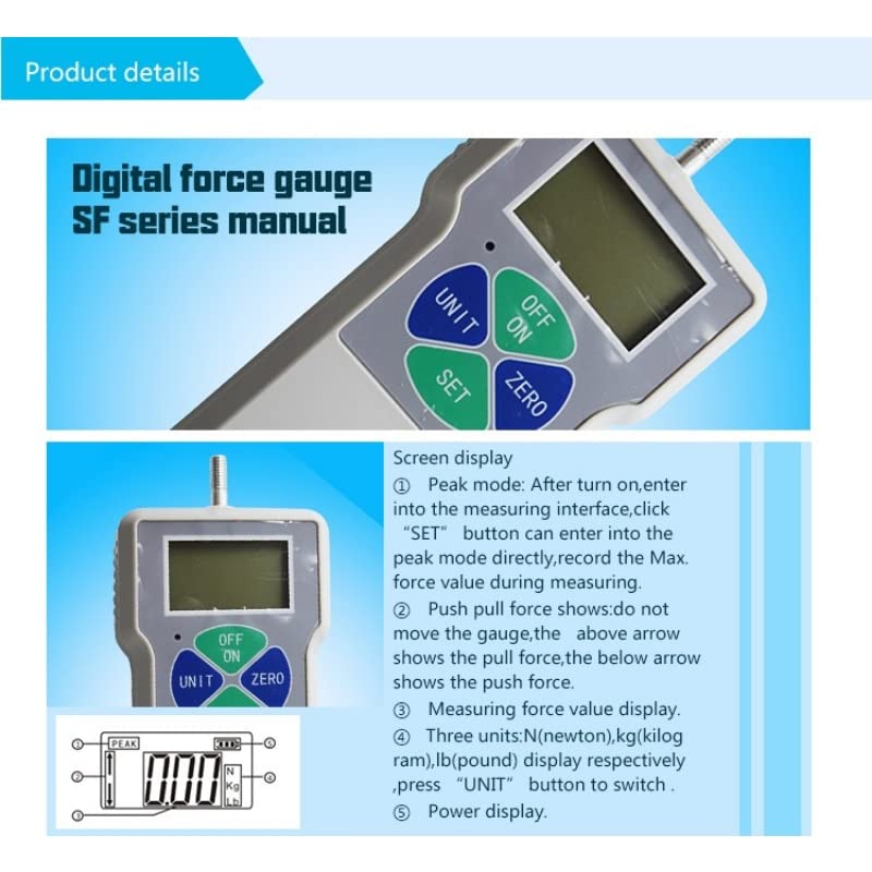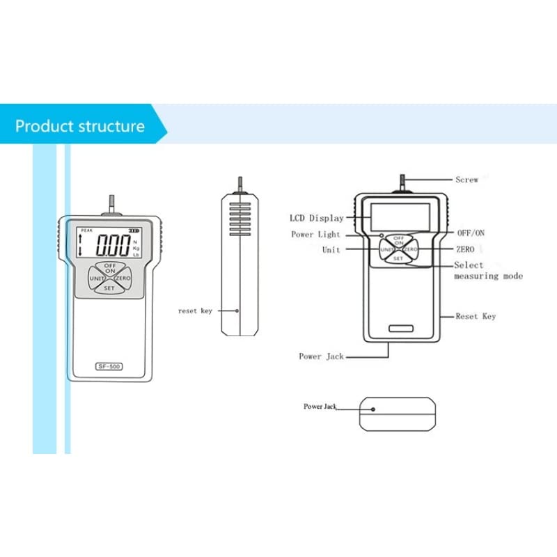 500N/50Kg/110Lb SF-500N Digital Push and Pull Force Gauge ±0.5% Accuracy