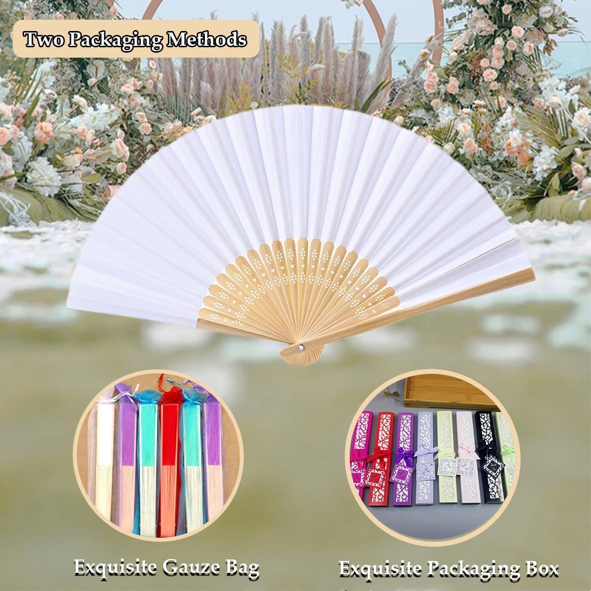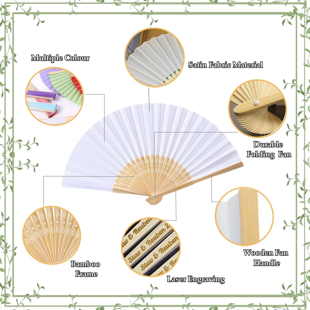 Personalized bamboo + fabric wedding fans, party favors, personalized text laser engraving hand fans, special event fans Size: fan unfolded size is 14.9 inches, fan handle length is 8.2 inches. Fan color: purple/blue/pink/black/light blue/white/off-white/green/red/orange/rose red/burgundy These folding silk hand fans are suitable for all occasions like wedding/tea party/church/dance events etc Note: ► Please check your spelling and grammar as I will copy what you have provided without any modifications, including citations. So don't use quotes if they're not required. ► Check your address and make sure it is correct, if it needs to change please contact us as soon as possible to make it happen. ► If you have any questions, please ask before placing your order.