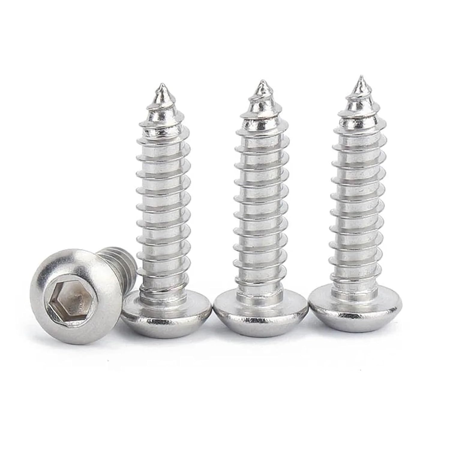 Screw & Bolt Assortment SetsItem descriptionHex Hexagon Socket Pan Head Self-tapping ScrewMaterial:304 (A2-70) stainless steelSize : d(thread diameter) x L(thread length)thread diameter: 3mm / 4mm/5mm/6mmMetric thread pitch: 0.5mm(M3)/0.7mm(M4)/0.8mm(M5)/1mm(M6)Thread length: 6-40mmProduct display==========Dimensions : M3*10DIY Supplies : Woodworkingis_customized : YesDrive Style : Hex SocketHead Style : PanModel Number : M3Screw Type : Self-tapping ScrewsMaterial : STAINLESS STEELOrigin : Mainland ChinaCertification : none