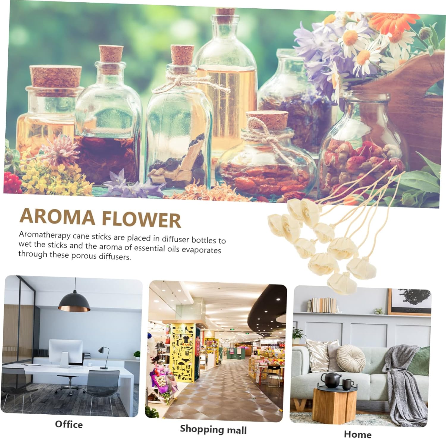 Package List diffuser sticks Features -Color:Khaki diffuser sticks refill -Material: , wood fragrance oil flower diffuser -Size:22.00X4.50X4.50cm/8.65X1.77X1.77in unscented diffuser sticks -Suitable for homes, bedrooms, hotels, offices, study rooms, conference rooms, yoga rooms, dormitories and other places scented sticks home. -Suitable for matching with various diffuser bottles, let the comfortable and pleasant fragrance fill your home diffuser stick. -Diffuser sticks help release of essential oils and create natural and relaxing fragrances around the room essential oil stick diffuser. -The diffuser sticks with proper length and easy to put into the aroma bottle essential oil diffusers. -The flower design makes them an decor for interior decoration, adding natural flavor diffuser sticks flowers.Goods Informationaroma bottle inserts sticks Widely applied in home, bathroom, bedroom, hotel, shopping mall, and so on.aromatherapy diffuser The unique design makes them the ideal decoration for interior, adding a natural touch.aroma volatile wands want to have some diffuser stick to match with your aroma bottles to release aroma? If so, our diffuser sticks are carefully prepared for you