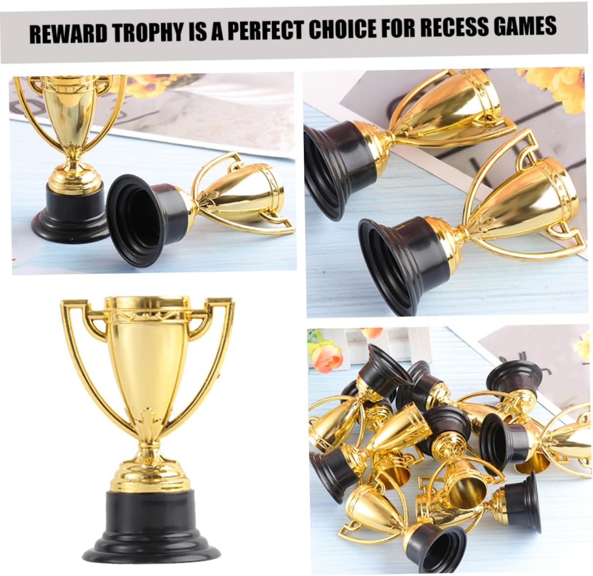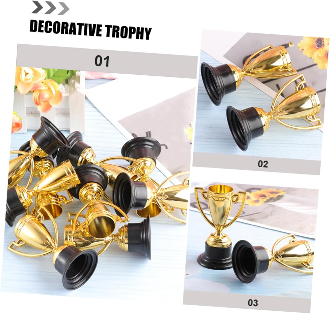 Package List Plastic Trophies Characteristics -Color:Golden winner award trophy -Size:8.50X4.50X4.50cm/3.34X1.77X1.77in celebration trophy decor -Material:plastic party competition trophy -The trophy is widely used in various competitions, awards, parties, etc., which is very practical ceremony trophy decor. -No matter what kind of competition it is, can give you a trophy to them party trophy cup. -Special shaped trophy is the favored present at parties, can be used as party favor and game , etc competition trophy. -With it, they will never forget the exciting moment of winning trophies and medals tournaments medal. -The award trophy features special shaped playing design, with realistic appearance and bright color winner competition trophy.Goods Descriptionaward trophy for kindergarten You can use this decorative trophy as a reward for competitions, encourage them to actively participate in various competitions, and bring them more fun.prize present the choice for your trophy.celebration competition trophy This trophy with a special shaped playing statue and a sturdy base