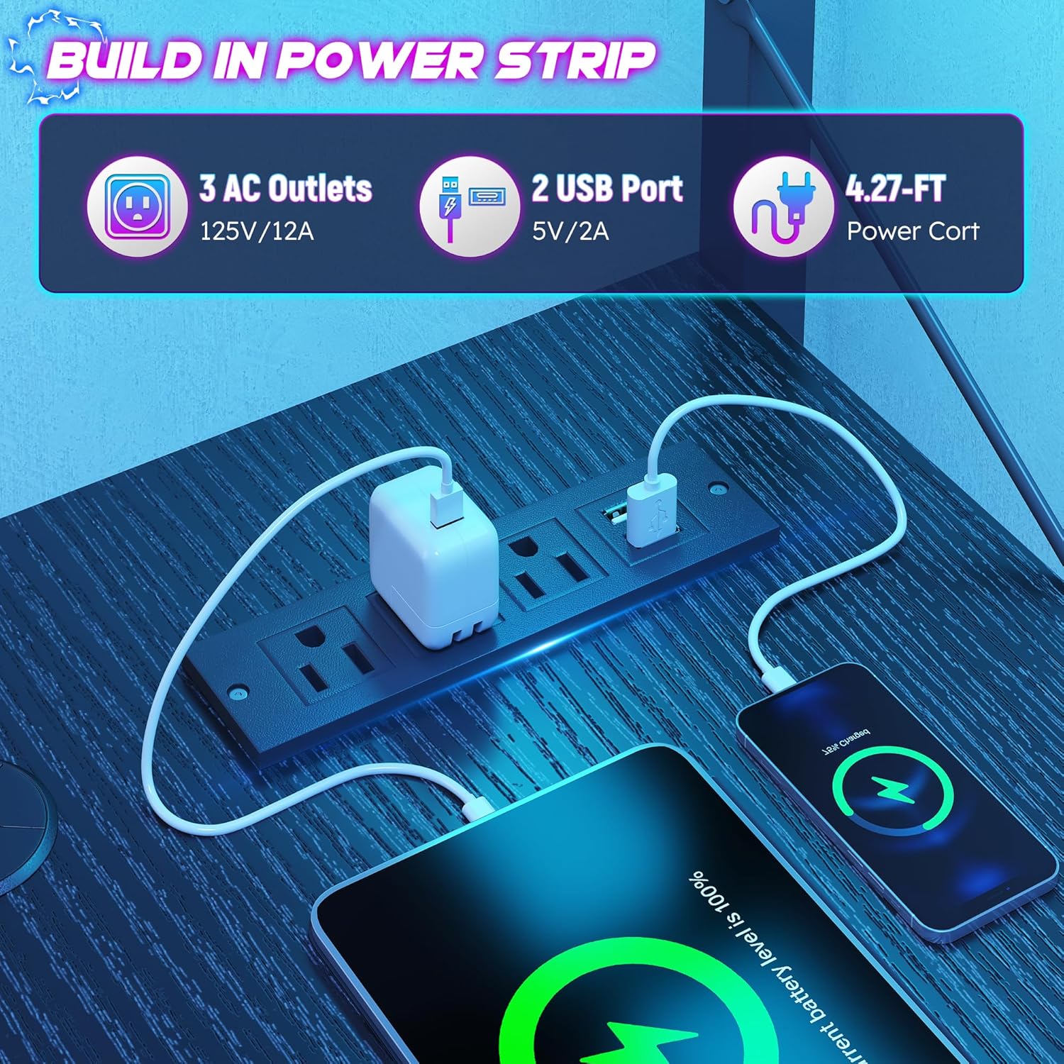 | Additional Features | L shaped Desk, Built-In USB Outlet, Gamer Desk with lights |