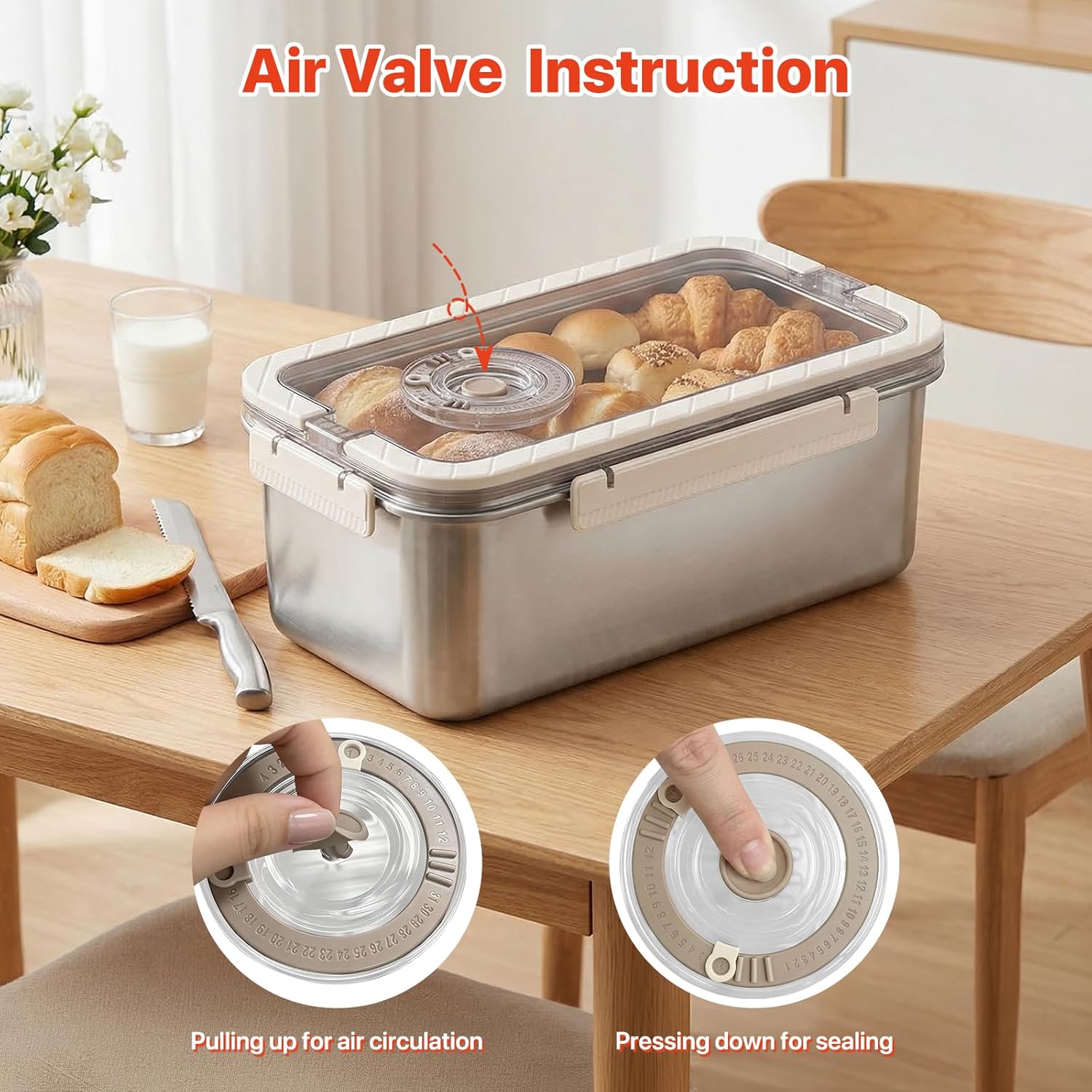 5.8L Large Capacity Stainless Steel Bread Box with Handle, Time Recording Airtight Food Storage Container for Kitchen Countertop, Bread Keeper for Homemade Bread, Toast, Bagel, Donut and Cookies