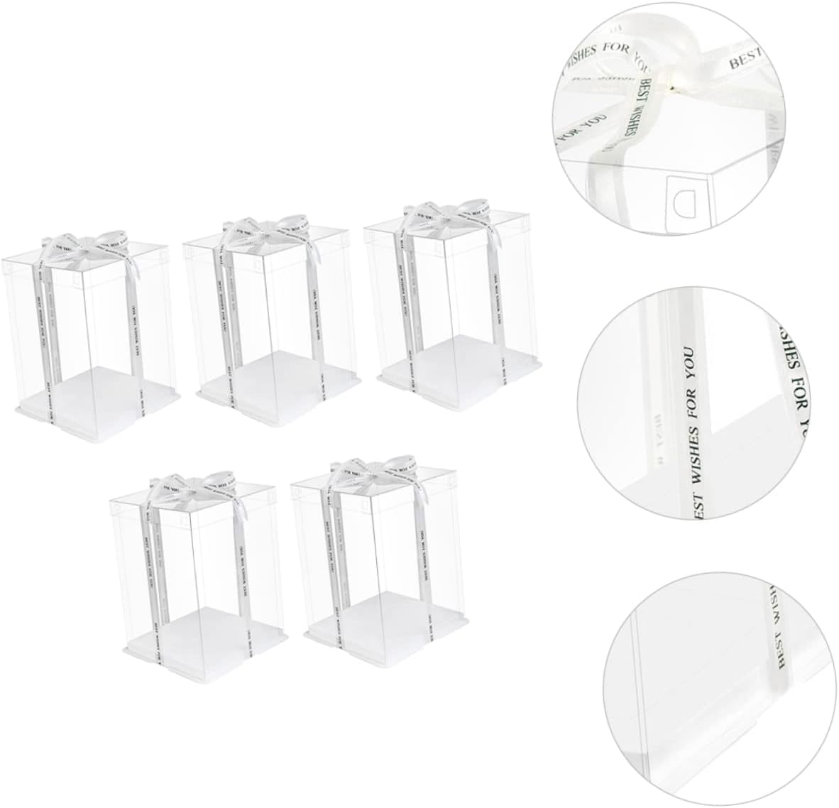 Package Include 5 x cake packaging boxes Features - Color: White ( color for ribbon) Cake Packing Case. - Material: Food grade white card, PET Cake Storage Container. - Size: 26.00X26.00X25.00cm/10.22X10.22X9.82inch Cake Dessert Packing Box. - Applicable: for 8 inch cake Food Packaging Boxes. - Ribbon keep the food sealed and the cover coming off Cake Box. - With ribbon for you to carry your cake or other food everywhere Cake Packing Box. - Made of material, which is very and to use Square Storage Container. - Very suitable for wrapping Christmas, New Year, birthday, holiday cakes Cake Storage Box. - No bad , easy to clean, not easy to break, for car travel, outdoor picnics, etc Cake Container.Goods DescriptionCake Holder This item is a cake carrier, made of and sturdy food grade white card, PET material.Cake Wrapping Case Transparent surface helps you see the inner clearly.Transparent Cake Boxes The ribbon design makes this storage organizer more portable and .Food Packaging Boxes It can be used for refrigerator or kitchen