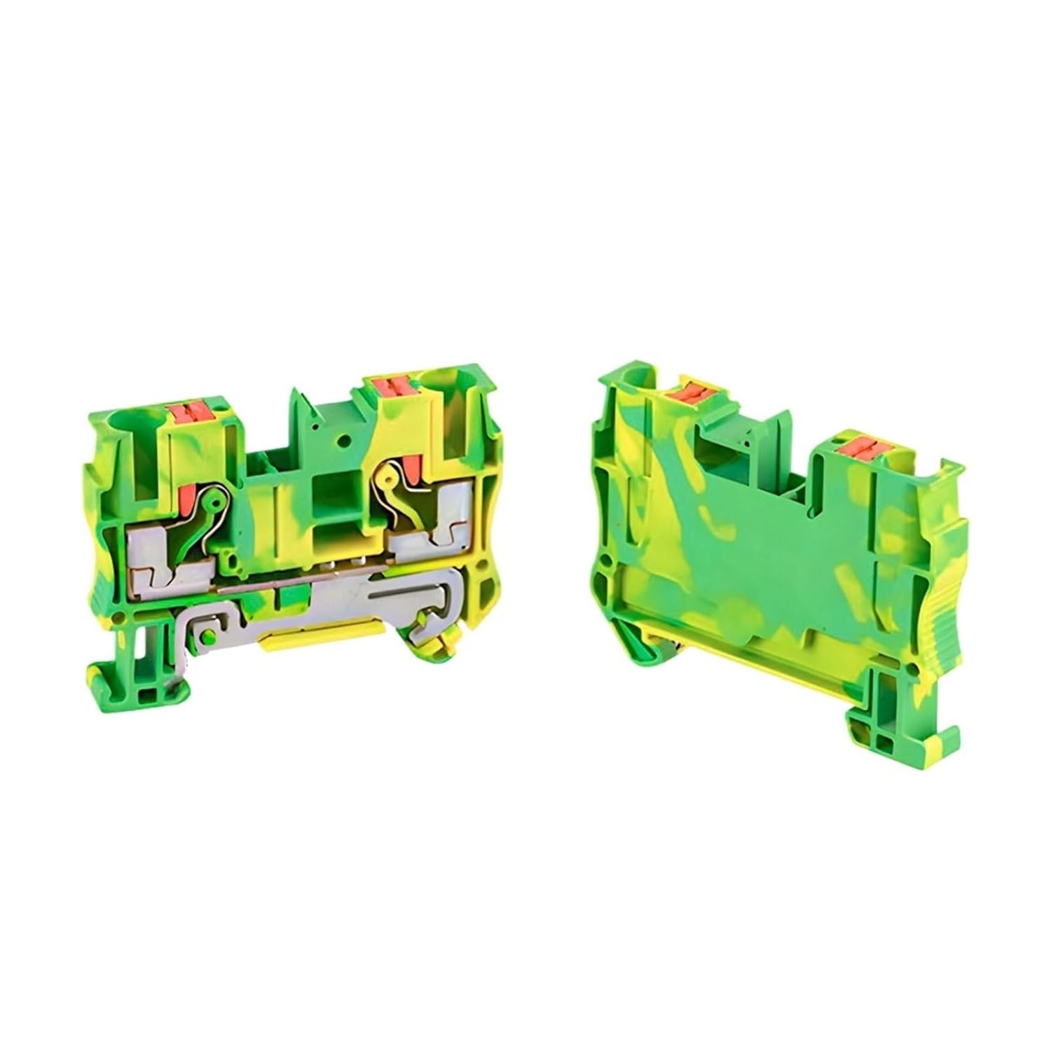 Ground Circuit Terminal Blocks5Pcs PT6-PE Din Rail Ground Terminal Block Ground Spring Feed Through Connection Push In Screwless Wire Conductor