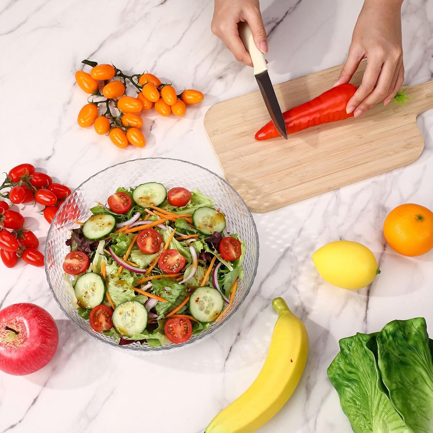 Features: Visually Appealing: Designed to blend elegance with practicality, these bowls make serving food easier for both home and home and commercial use. Elegance Without the Fragility: Most elegant serving bowls are made of glass, which is heavy and breakable. These plastic bowls have the same clear, sophisticated look as glass but are shatterproof Specifications: Size: 10 x 10 x 2.2 inch/25 x 5.5 x 5.5 cm Material: PET Color: crystal Package Included: 6 x Large plastic serving bowls Warm notes: Manual measurement, please allow slight errors in size. The color may slightly differ due to different screen displays