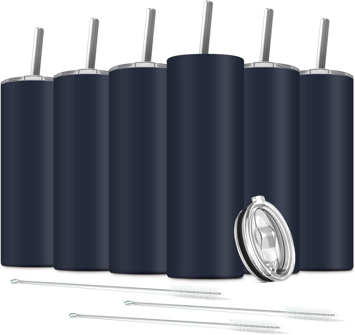 20oz Double insulated stemless spill proof tumblers,stainless steel tumbler cup with lids and straws for coffee and drinks! Material:Water tumbler is made of quality 18/304 stainless steel with an extra spray painting,non-toxic no smell, protect your health. Vacuum insulation:18/8 stainless steel double wall vacuum insulation technology, can maintain the temperature of hot coffee for 3hours and cold drinks for 5hours. Wide application:Six colors of products for selection, suitable for a variety of occasions: home, outing, tourism, etc.Suitable for water, milk, wine,juice, smoothie, champagne and other drinks. Specifications: Material: 304 stainless steel Height: 21.4 cm/ 8.3 inch (including lids) Bottom base diameter: 6.7 cm/ 2.6 inch Cup mouth diameter: 7.4 cm / 2.9 inch Color: as the picture shown Package: box Package includes: 6x Stainless wine tumblers 6x Steel straws 6x Splash proof lids 3x Straw brush Warm tips: We recommend hand washing. Certain dishwashers and detergents can leave spots on the exterior.