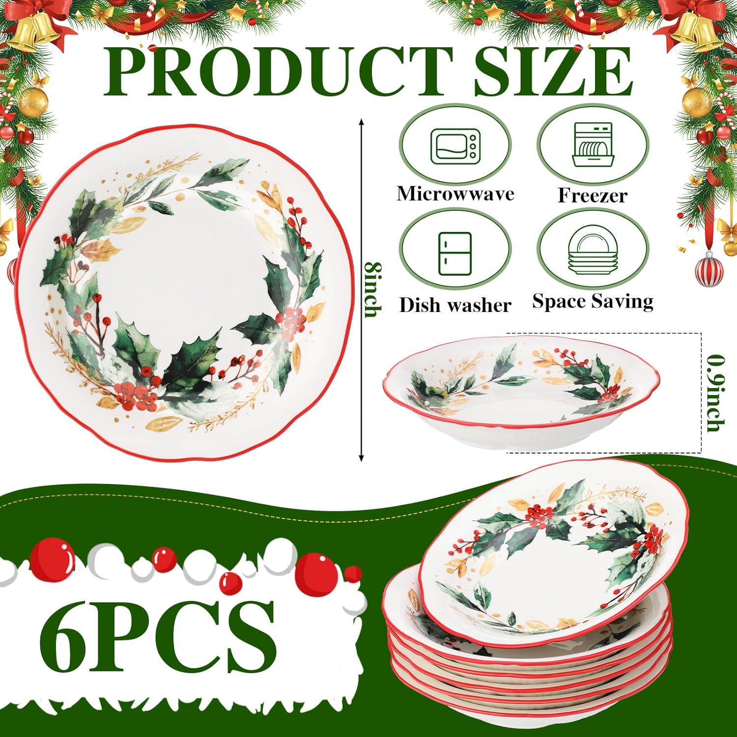 Features: This Christmas tableware set creates beautifully coordinated settings for seated luncheons, dessert displays, and buffet arrangements. The complete collection adapts to various dining styles while maintaining elegant consistency. Guests will admire the exceptional craftsmanship and traditional holiday patterns that showcase sophistication. The timeless Christmas designs bring universal delight to all your seasonal gatherings. Specifications: Material: ceramic Color: multicolor Size: 8 inch Package includes: 6 x Christmas dinner plates Notes: Manual measurement, please allow slight errors on size. The color may exist a slight difference due to different screen displays.