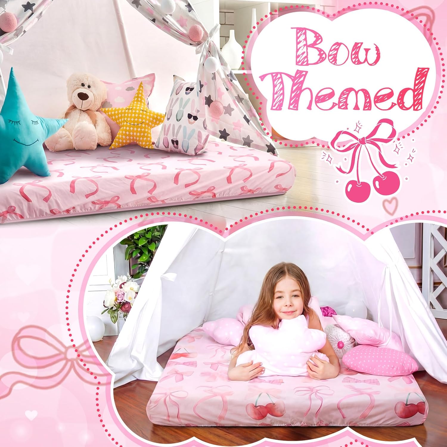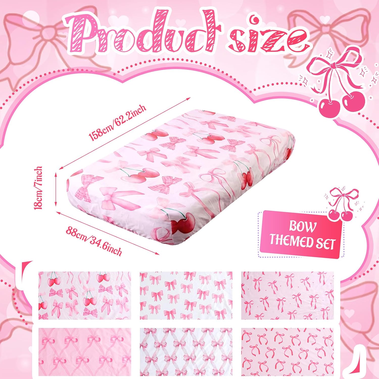 Features: Enhances sleep quality: Our air mattress sheets are not just functional, but also cute. These Sheets fit perfectly on a air mattress of 62.2 x 34.6 x 7 inches. The fitted sheet features a cute pink color and a bow pattern, adding a touch of liveliness to a child's temporary sleeping environment A happy mood can improve a child's sleep quality. Liveliness color scheme: Our airbed fitted sheets are available in a pink color and cute bow pattern that adds a liveliness and dreamy ambiance to the bedroom. This pack of 6 sheets is designed to provide a peaceful night's rest for your kids. Specifications: Material: 100% percent polyester Color: white, pink Size: fit about 61.8 x 34.6 x 7 inches/ 158 x 88 x 18 cm Package includes: 6 x Inflatable mattress fitted sheets Notes: Manual measurement, please allow slight errors on size. The color may exist a slight difference due to different screen displays