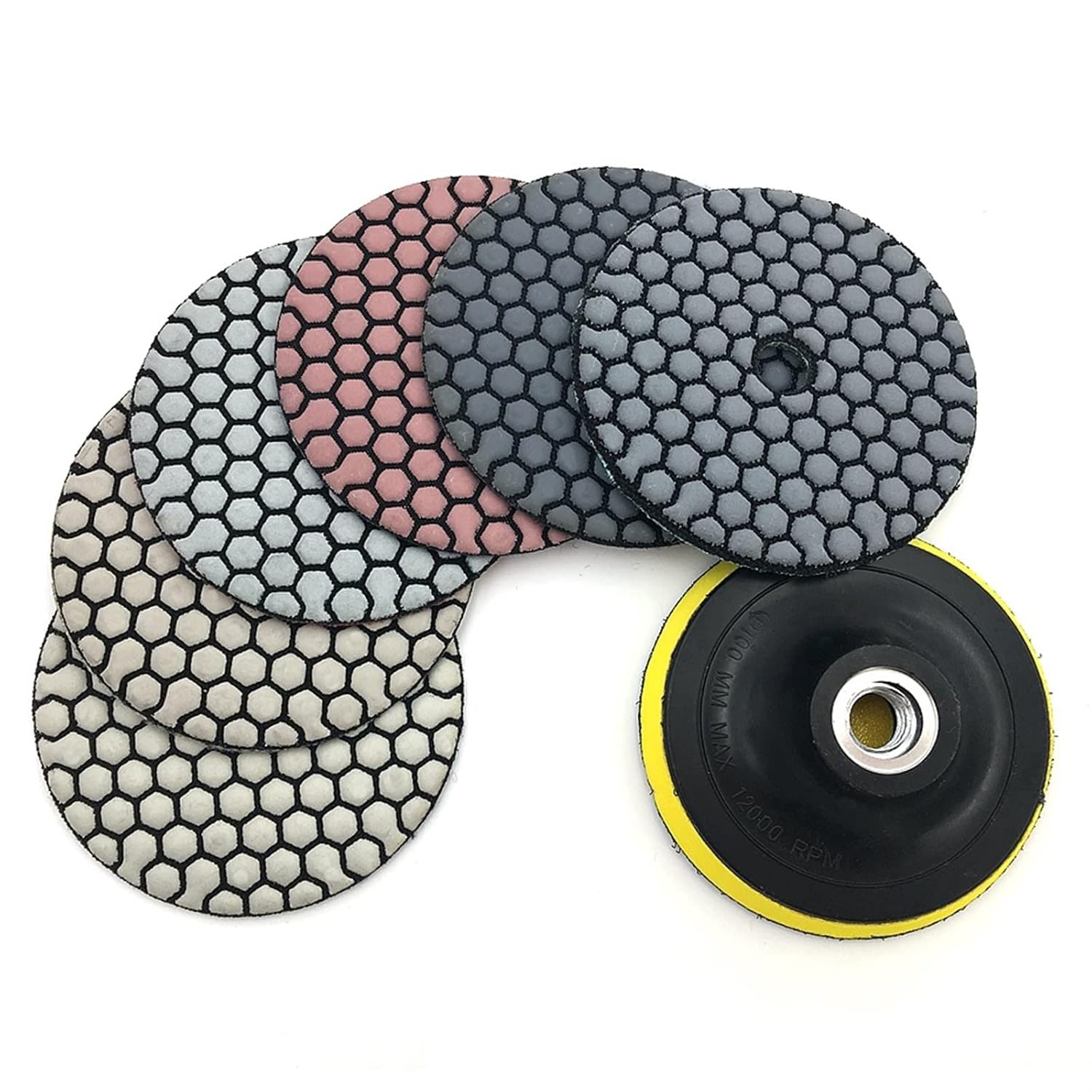 Abrasive Accessories / Dressing ToolsModel NO. : H3Package : 6 pieces/lot + 1 piece backer pad M14 Diameter : 3inch/80mm OR4inch/100mmThickness : 3 mmHole : 16mmUse : Dry useMaterial : Thin, Sharp,diamond and resinChooseGrits:#0,#1, #2,#3,#4,#5Features : Thin, Sharp1. Dry polishing without water2. Flexible and smooth polishing3. Polishing with quick speed and without scrach4. Suitable for different RPMApplication:Our resin floor polishing pads are specially designed for polishing concrete,granite,marble,limestone and all kinds stones.
