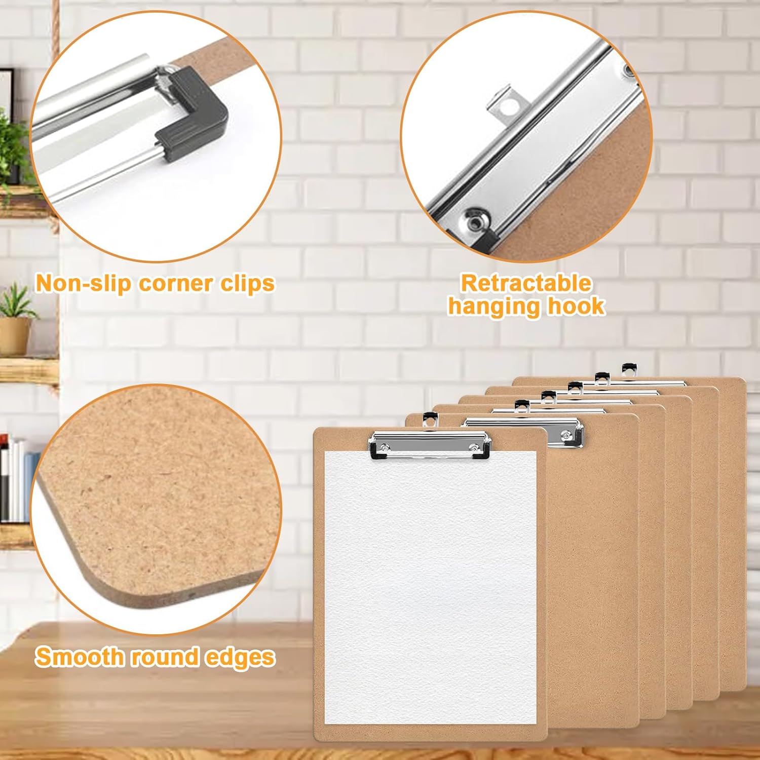 This clipboard is comfortable for writing without a desk and is made of high-quality density boards, which are lightweight, sturdy and easy to carry and can organize your paper for a long time. Suitable for storing receipts, menus, hospital records, shopping lists, tickets; It is perfect for offices, houses, warehouses, clinics, hospitals, classrooms, restaurants, sports centers. Feature: 1. EASY TO STORE - Design of a top telescopic suspension hook. These sturdy, lightweight clipboards are perfect for writing and moving notes. 2. Provides a smooth density plate surface with rounded edges for a comfortable grip. It is not easy to deform or break. 3. MULTIFUNCTIONAL USE The clipboard design with smooth surface, writing smoother and can be used as a sketch board. 4. Suitable for A4 paper or smaller, the actual size will depend on your needs. Specification: Name: A4 binder with clip Colour: Brown Material: density board Weight: 1300g Size: 31.5 x 22.5 cm / 12.4 x 8.86 inches. Packing list: 6 x A4 folders.