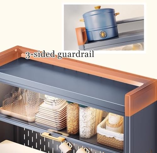 Introducing the JKGHK Kitchen Baker's Rack – a versatile addition to your home that combines functionality with style. Designed with a three-sided guardrail, this rack provides heightened multi-faceted protection, ensuring your items stay securely in place during loading and unloading. The adjustable shelves at the bottom cater to a variety of sizes, making it easy to store everything from small kitchen gadgets to larger appliances. With a reinforced structure that is 42cm wider, the L-shaped design offers exceptional stability, allowing you to confidently display your kitchen essentials. The enlarged workspace accommodates large appliances, while the widened side panels enhance safety and accessibility. The optimal height means you can work comfortably without the need to bend over, making meal prep and serving a breeze. Whether you're looking to create a chic kitchen buffet, a functional dining room sideboard, or a stylish coffee bar station in your living room, this rack is the perfect fit. Its sleek gray metal finish complements any decor, making it a must-have for any modern home. This Kitchen Baker's Rack is not just about storage; it’s about elevating your space. Transform your kitchen, dining area, or entryway with this practical and elegant solution. Please note that due to the handcrafted nature of this product, there may be a slight 1-2 cm size variation. Additionally, colors may differ slightly due to lighting and screen settings. Each package includes one Kitchen Baker's Rack and accessories for easy assembly. Elevate your home organization today with the JKGHK Kitchen Baker's Rack – where style meets functionality.