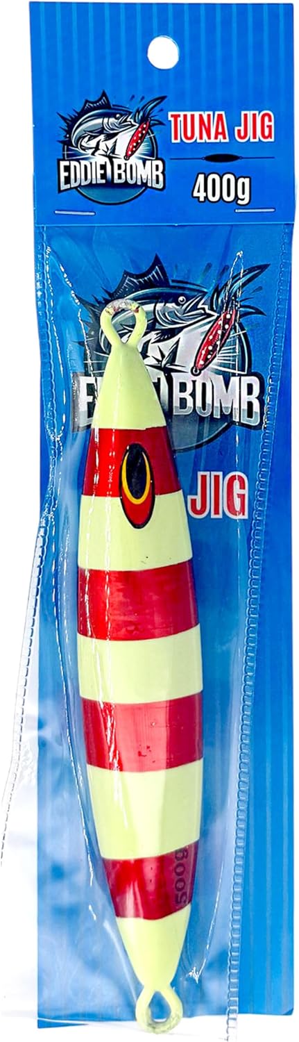 Upgrade Your Deep Sea Fishing Game with the 6" Rainbow Zebra Glow 400g Tuna Jig (3-Pack) Take your saltwater fishing to the next level with our 6" Rainbow Zebra Glow 400g Tuna Jig, expertly engineered for offshore anglers targeting tuna and other hard-fighting game fish. Designed for deep sea environments, this premium tuna jig delivers the balance, strength, and visibility needed to provoke aggressive strikes in any water condition. Built for Performance: This 400g tuna jig is optimized for vertical jigging and saltwater trolling, mimicking the natural flutter and movement of wounded baitfish. Whether you're jigging vertically or working through the water column, its lifelike action triggers bites from tuna, amberjack, and other offshore predators. High Visibility Finish: The vibrant Rainbow Zebra Glow coating enhances visibility in low-light, deep water, or murky conditions—making it an ideal choice for night fishing and offshore jigging. It stands out where other lures fade, giving you an edge in competitive fishing environments. Durable & Versatile: Each tuna jig features a strong, corrosion-resistant wire hook built to handle powerful strikes and repeated use in harsh saltwater conditions. Perfect for use as a wire jig, trolling lure, or vertical jig, this jig fits seamlessly into any saltwater fishing setup.